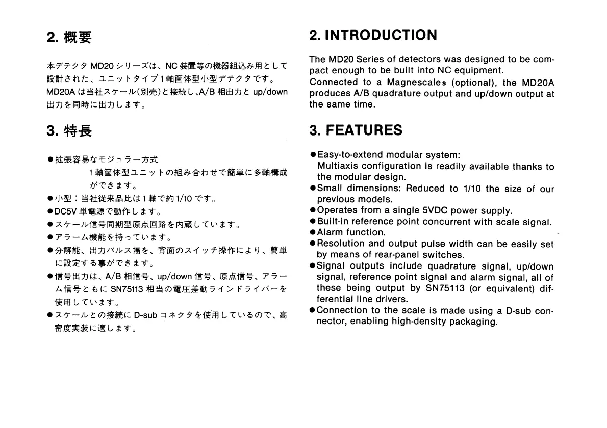 Sony Magnescale MD20A - 2. INTRODUCTION; 3. FEATURES