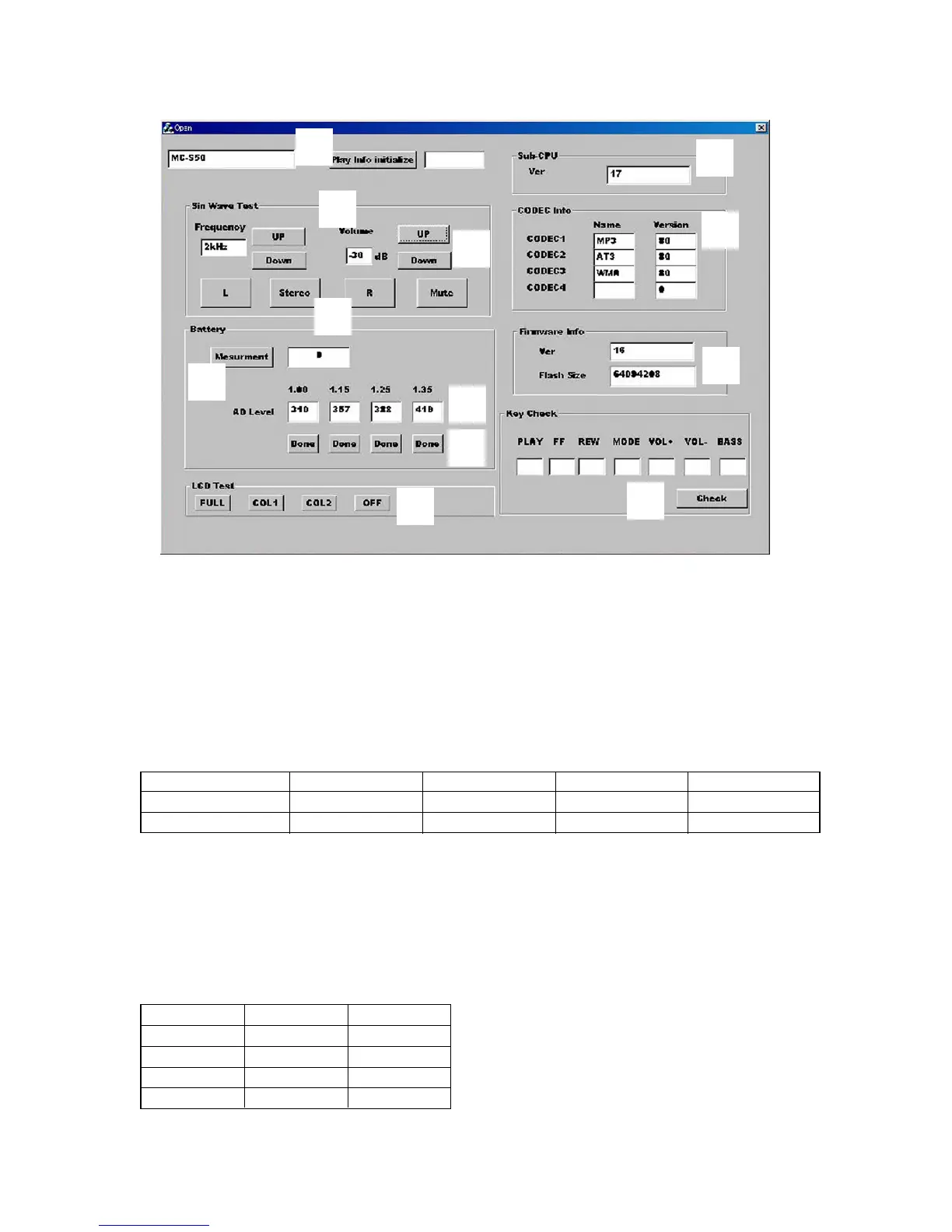 Connect an exclusive USB cable to the set, and available battery threshold values (converted values corresponding to voltage values)