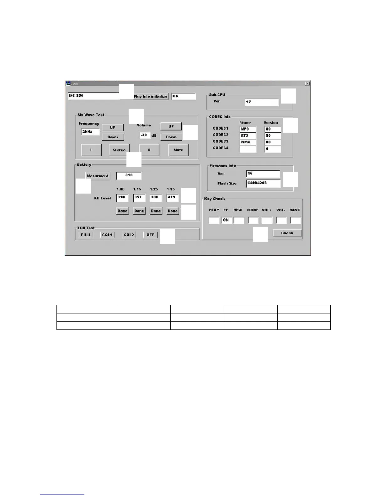 At this time, the battery threshold values of available voltage written to the board are displayed at 5.