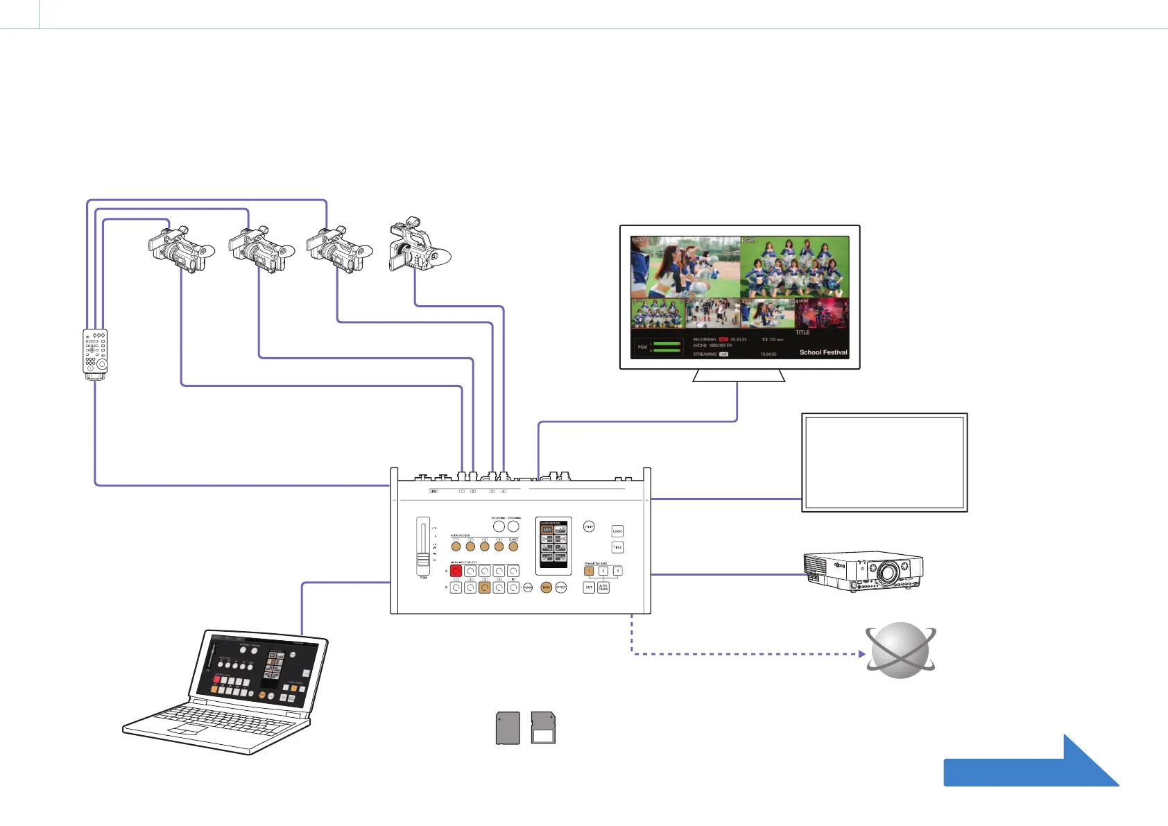 Live controls via a computer is also possible using the unit's live Internet distribution function. The unit can be used in a wide variety of venues for events, seminars, etc.