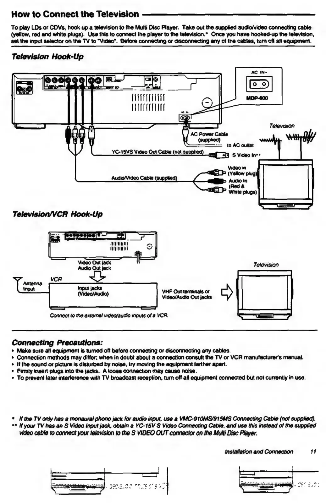 Sony MDP-600 - Connecting to a Television; Television Hook-Up Diagram