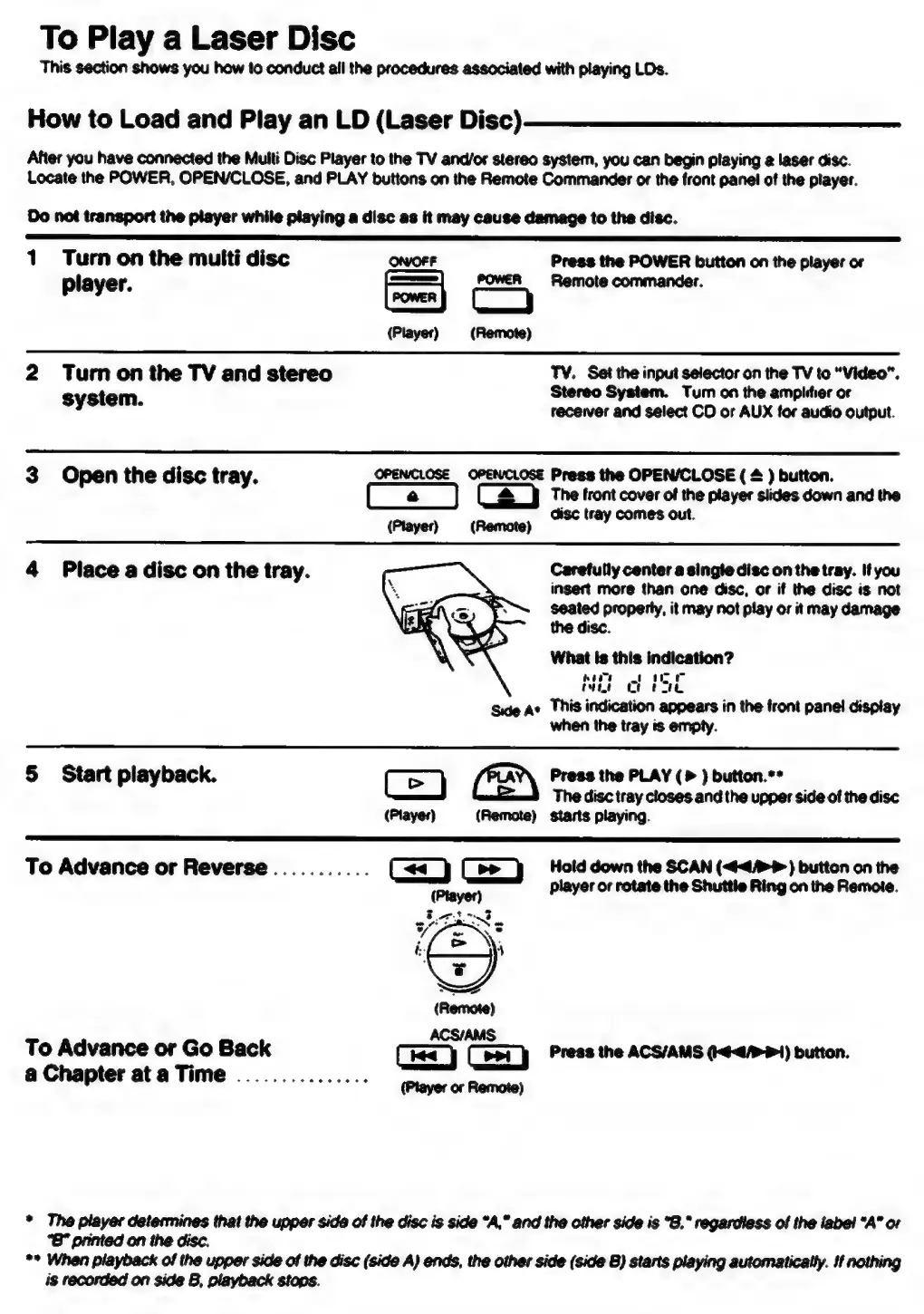 Sony MDP-600 - Playing a Laser Disc (LD); Loading and Playing an LD