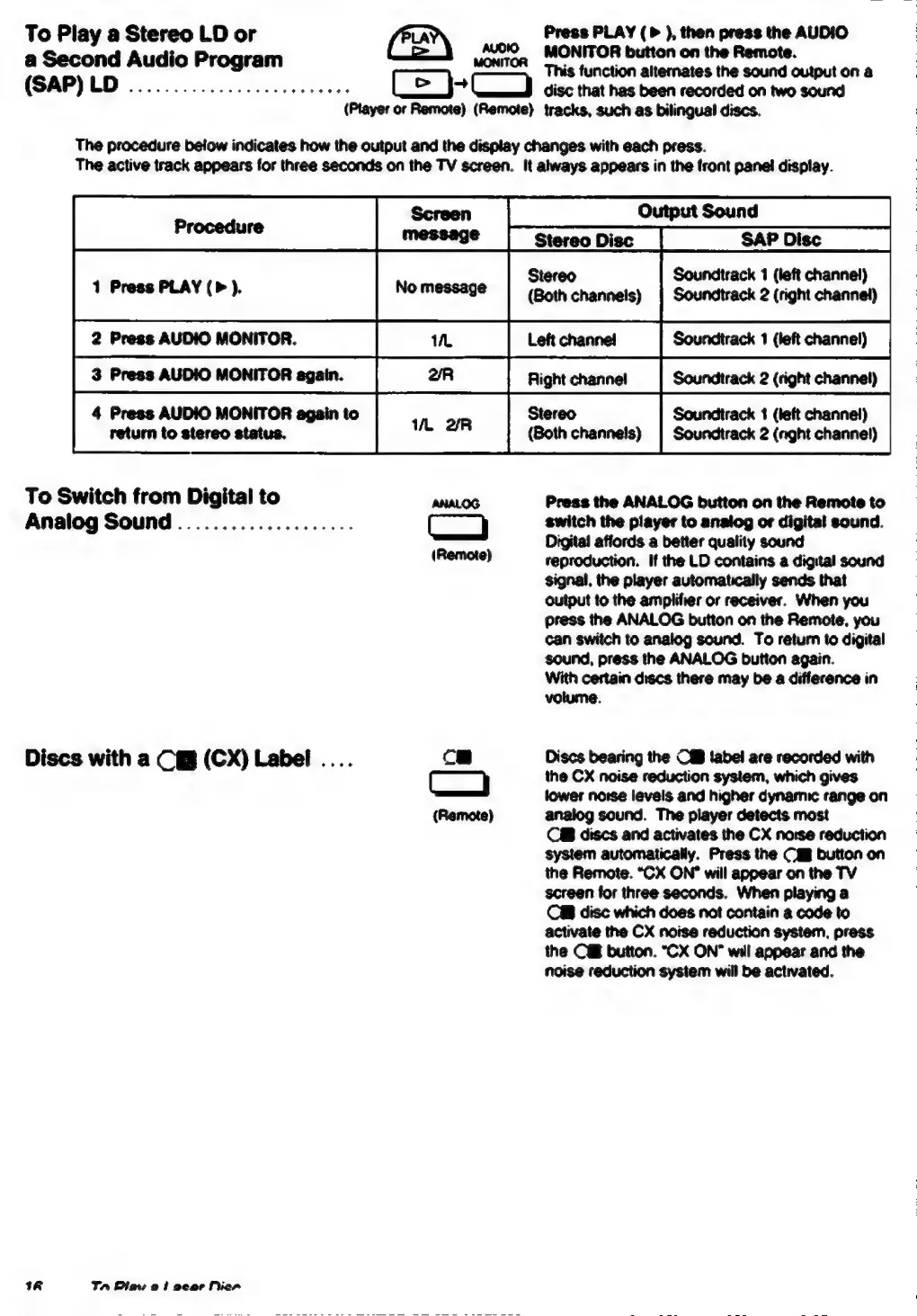 Sony MDP-600 - LD Audio Options; Switching Sound Modes