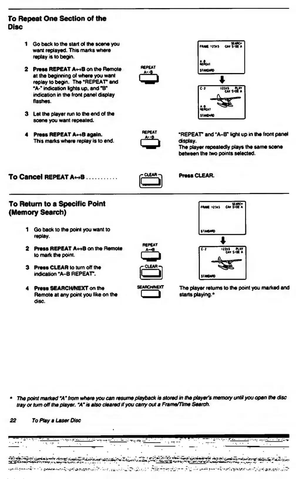 Sony MDP-600 - Advanced Repeat Functions (LDs); Repeating a Section (A-B Repeat); Memory Search Function