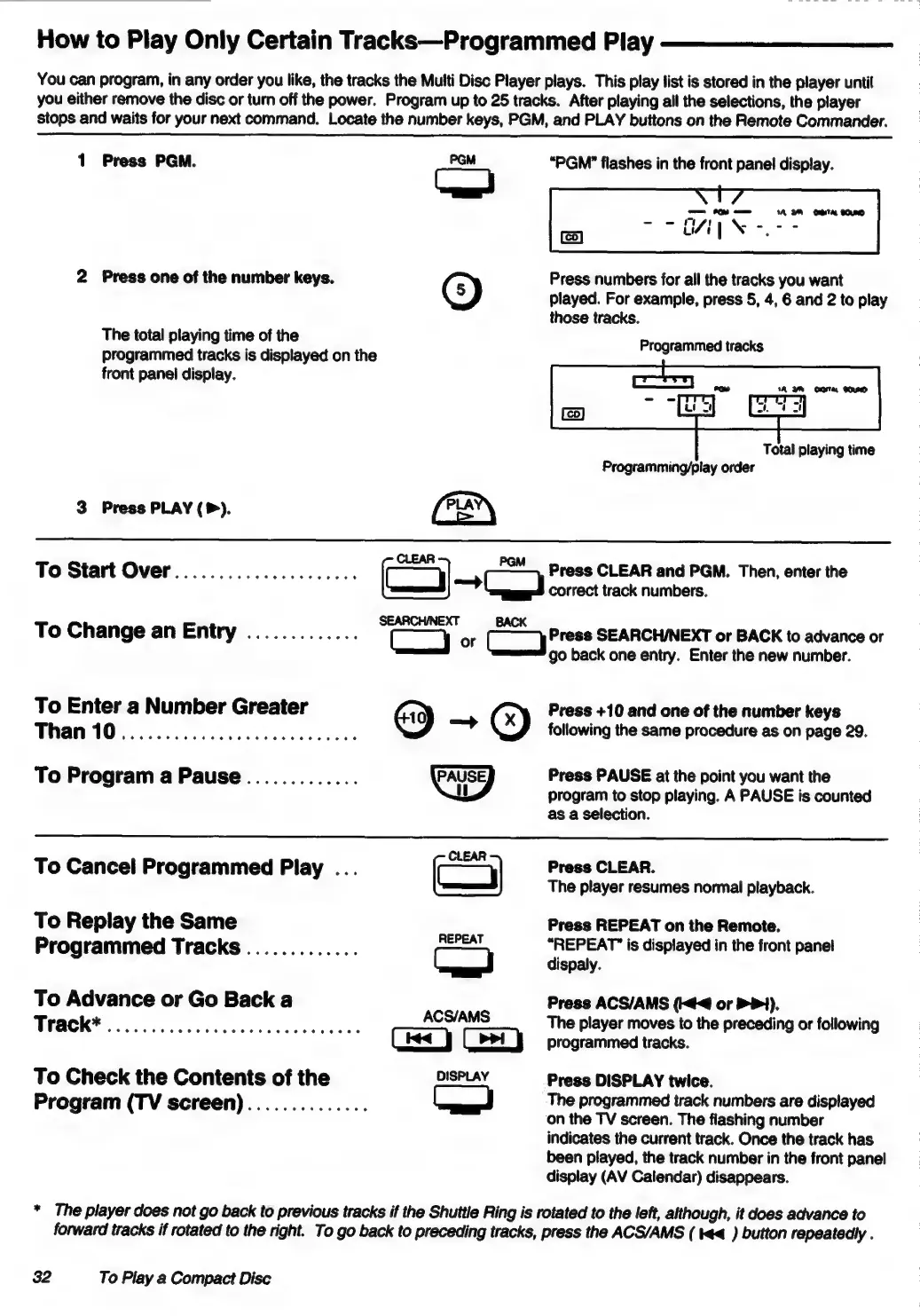 Sony MDP-600 - CD Programmed Track Play; Creating a Track Play List