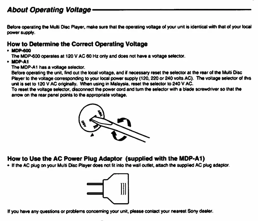 Sony MDP-600 - About Operating Voltage; Determining Correct Operating Voltage