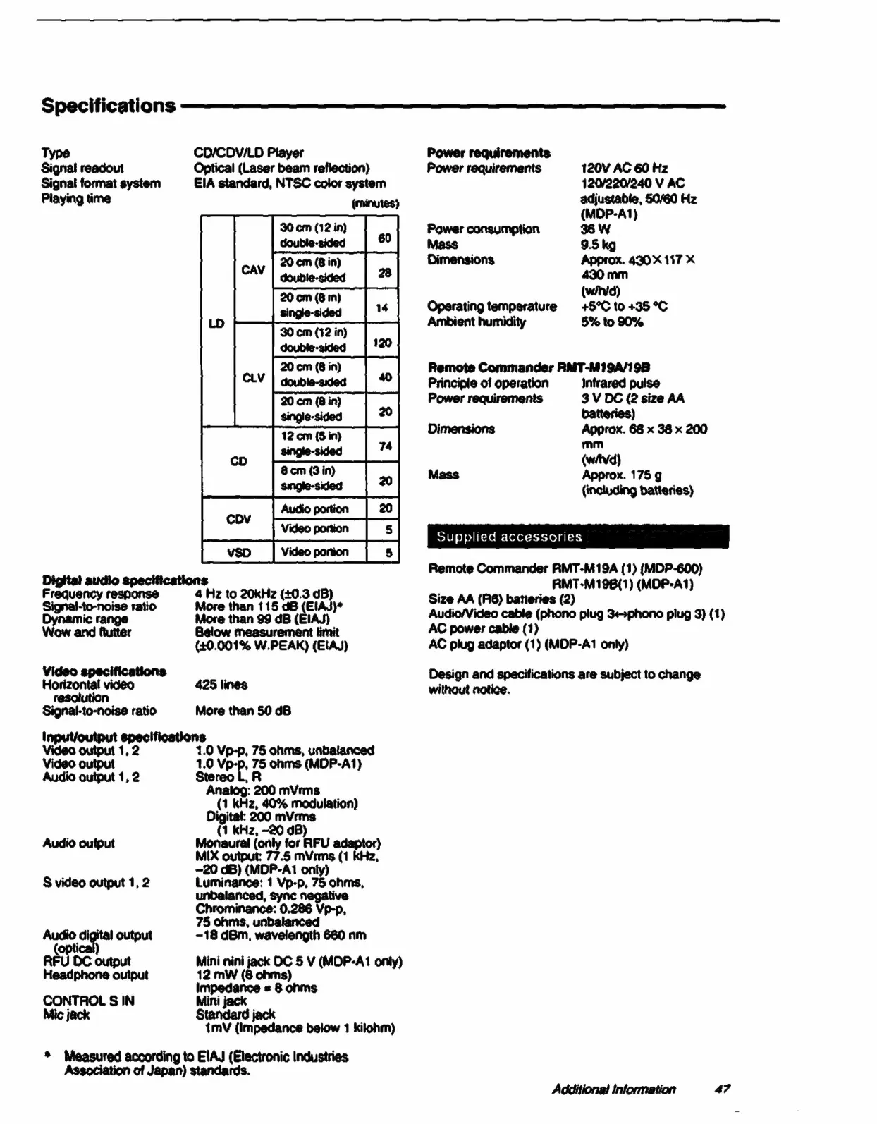 Sony MDP-600 - Specifications SHH HHA SSS SESH SOSH SESS OSSSEHESEHOSSEEHEHESEHH ESS EOSD SOSH OSS SSS SESS OSHS HOSESESSESESEHOHECOOOOSE; Specifications