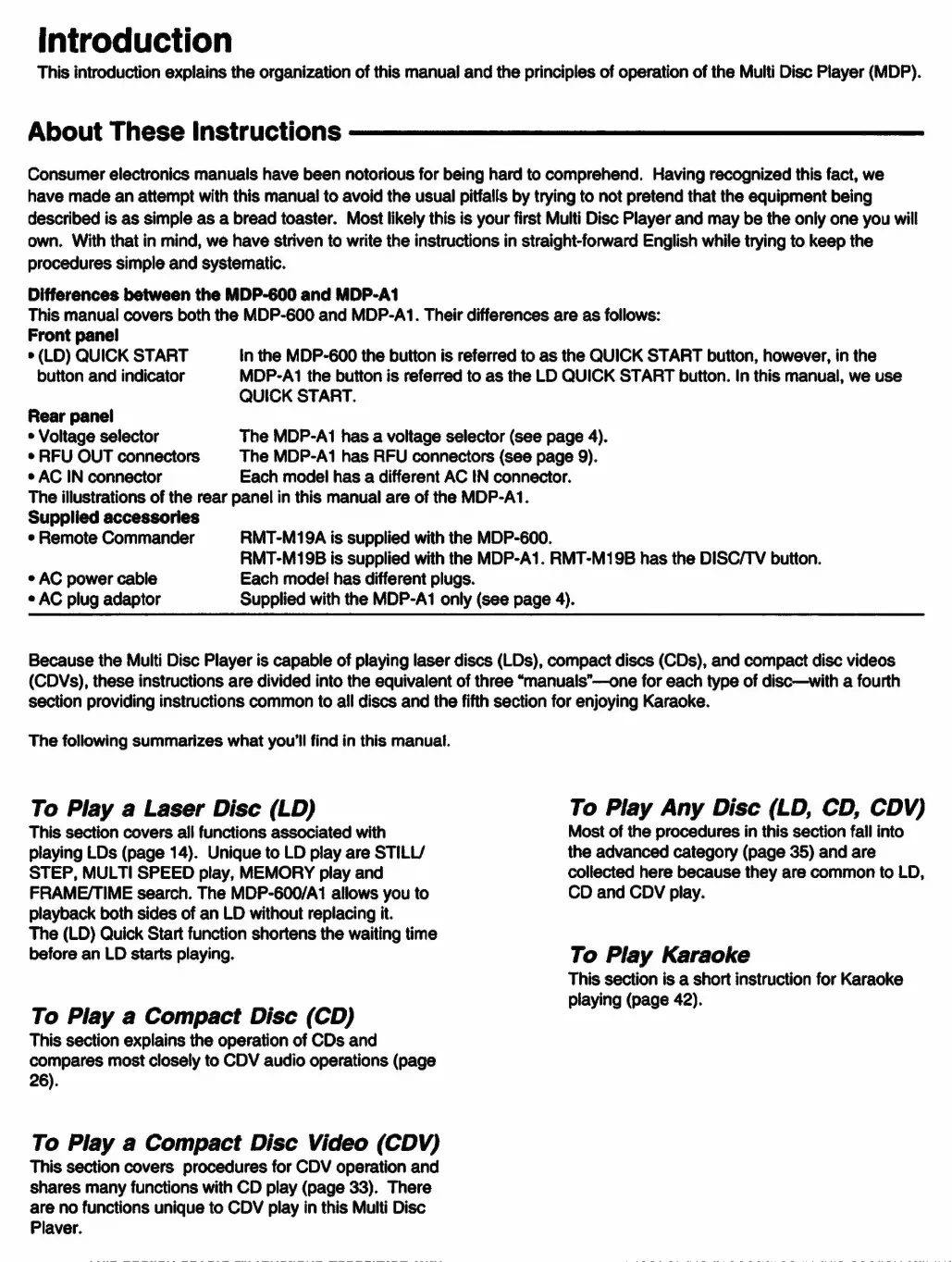 Sony MDP-600 - About These Instructions; Optical IC Aintenance PHS HOSES HESS SESSSH HOSE ESSEE EES FESS EHHSEHSESHEF EDD POSSESS ESSE SCSESSH SHOE OOSOSD