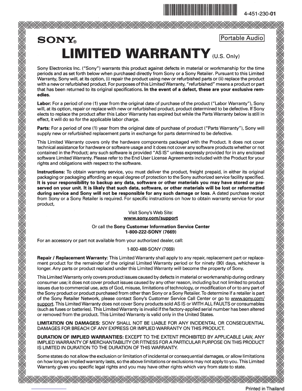 the Sony Retailer Network, please contact Sony's Customer Service Call Center