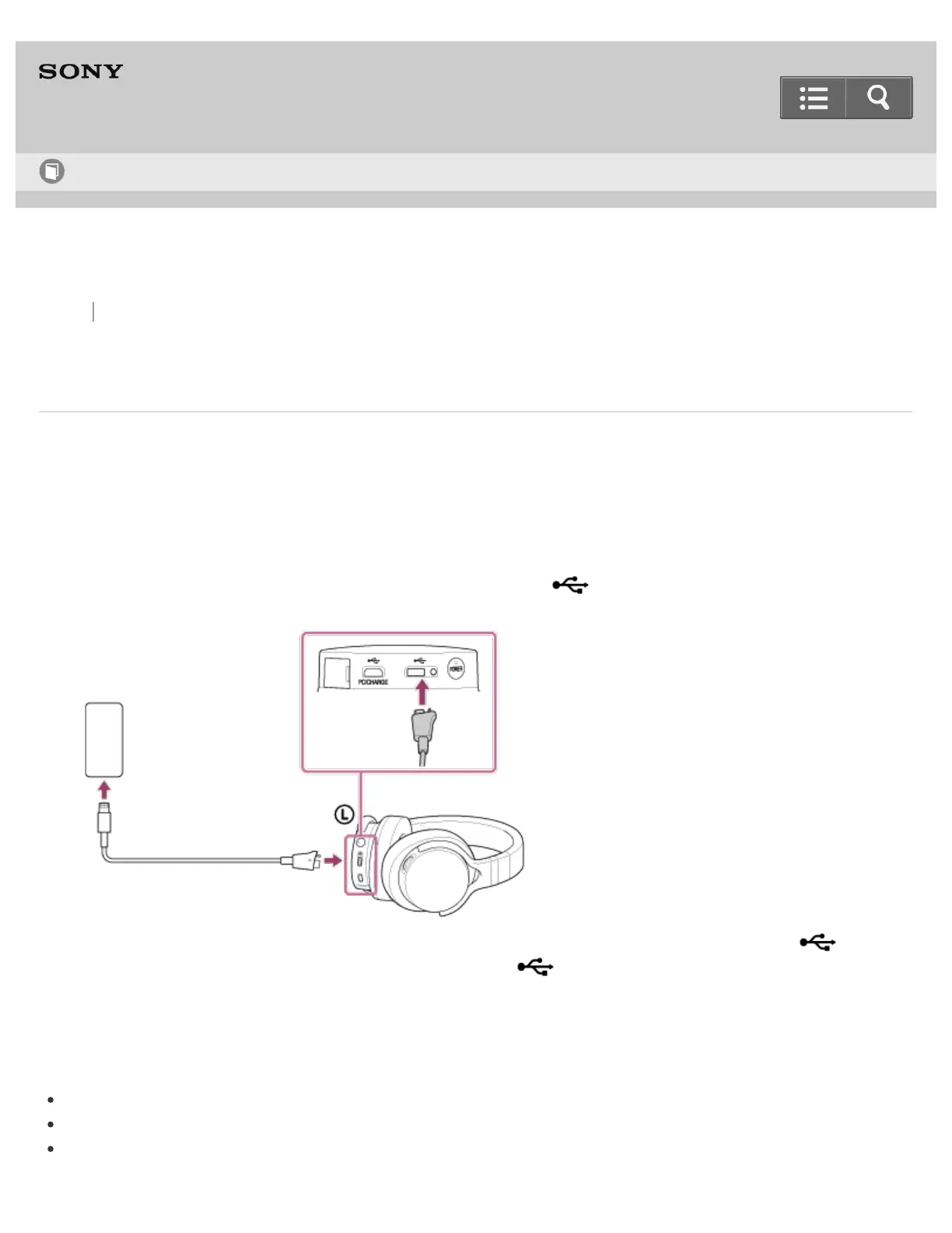 charging the headphones with the micro USB port (type B) ( PC/CHARGE).