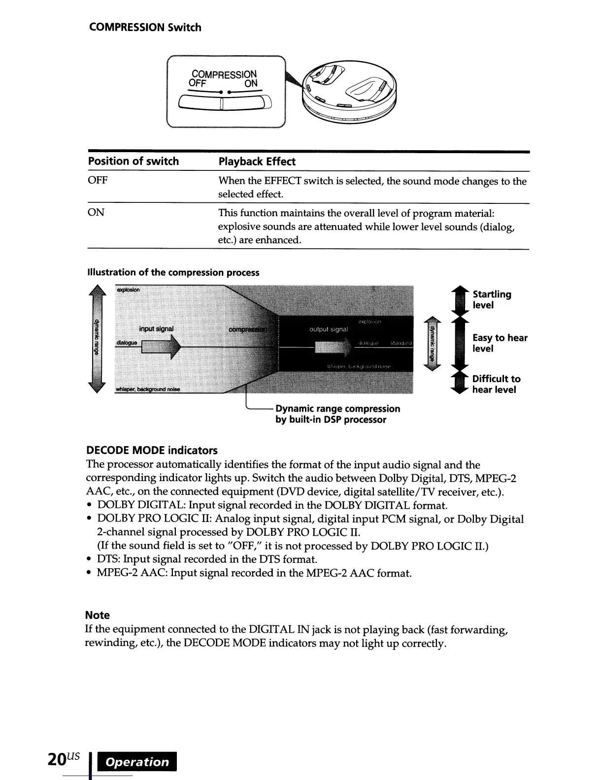 rewinding, etc.), the DECODE MODE indicators