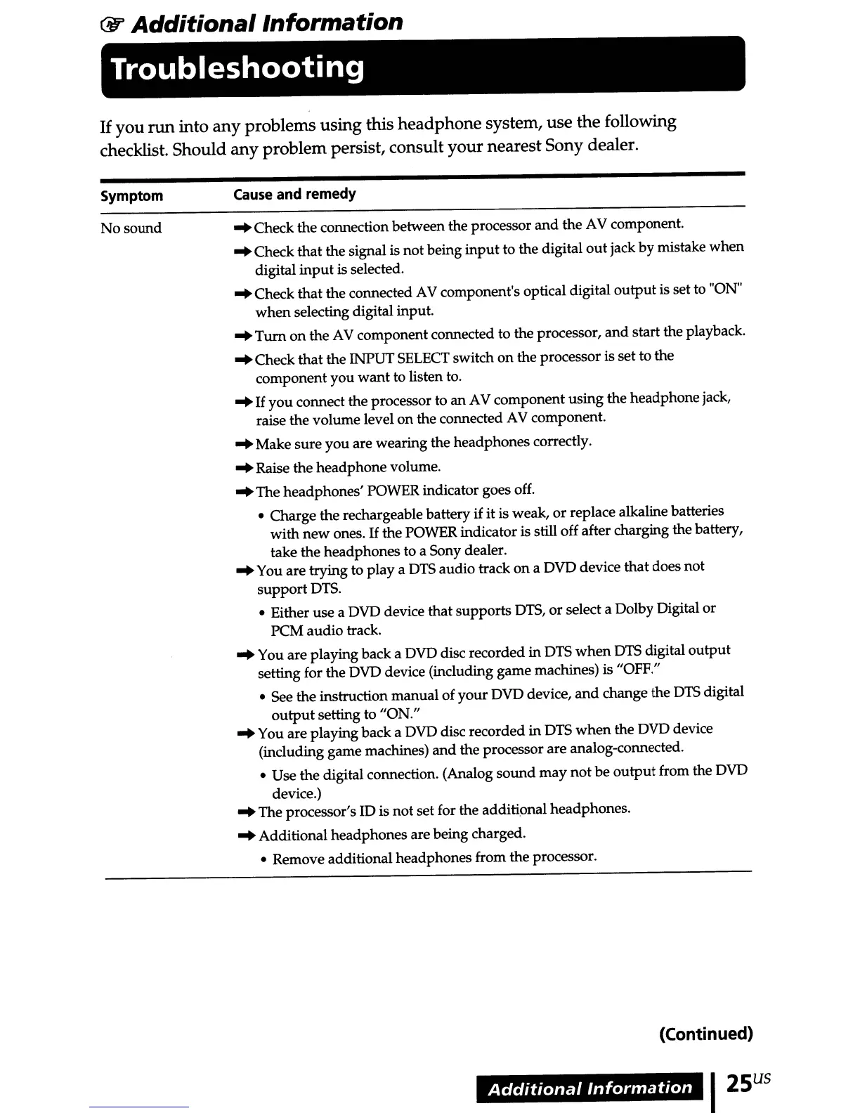checklist. Should any problem persist, consult your nearest Sony dealer.