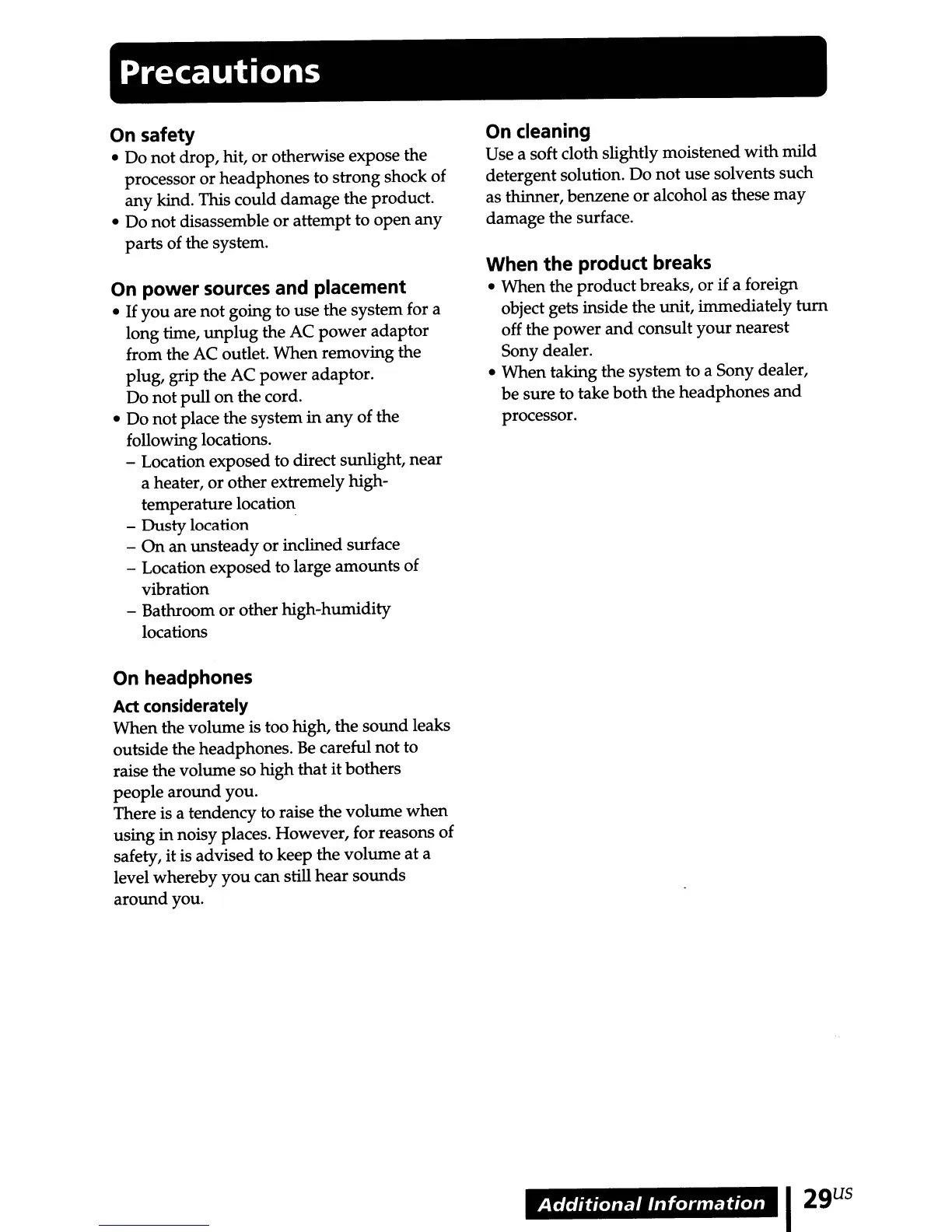 • When taking the system to a Sony dealer,