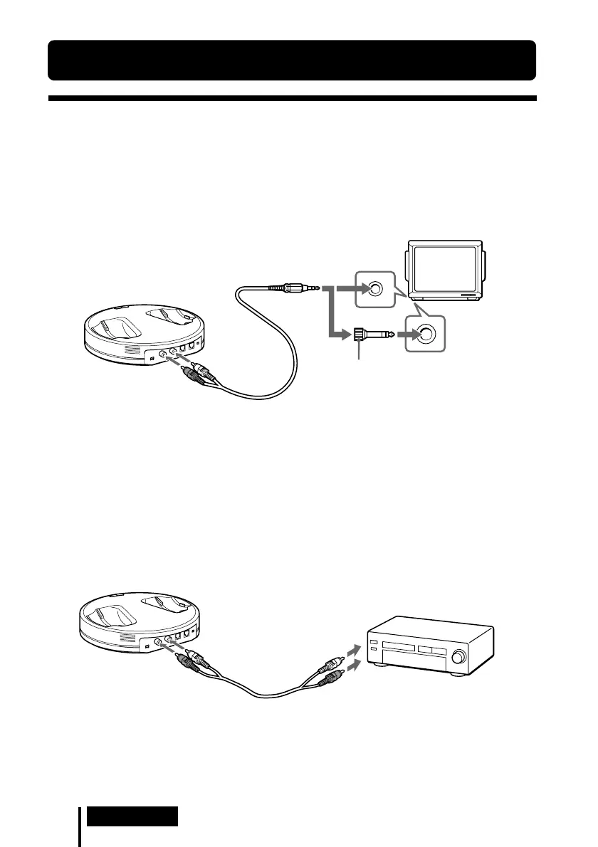 Use the supplied connecting cable (stereo mini-plug y pin plug × 2) when