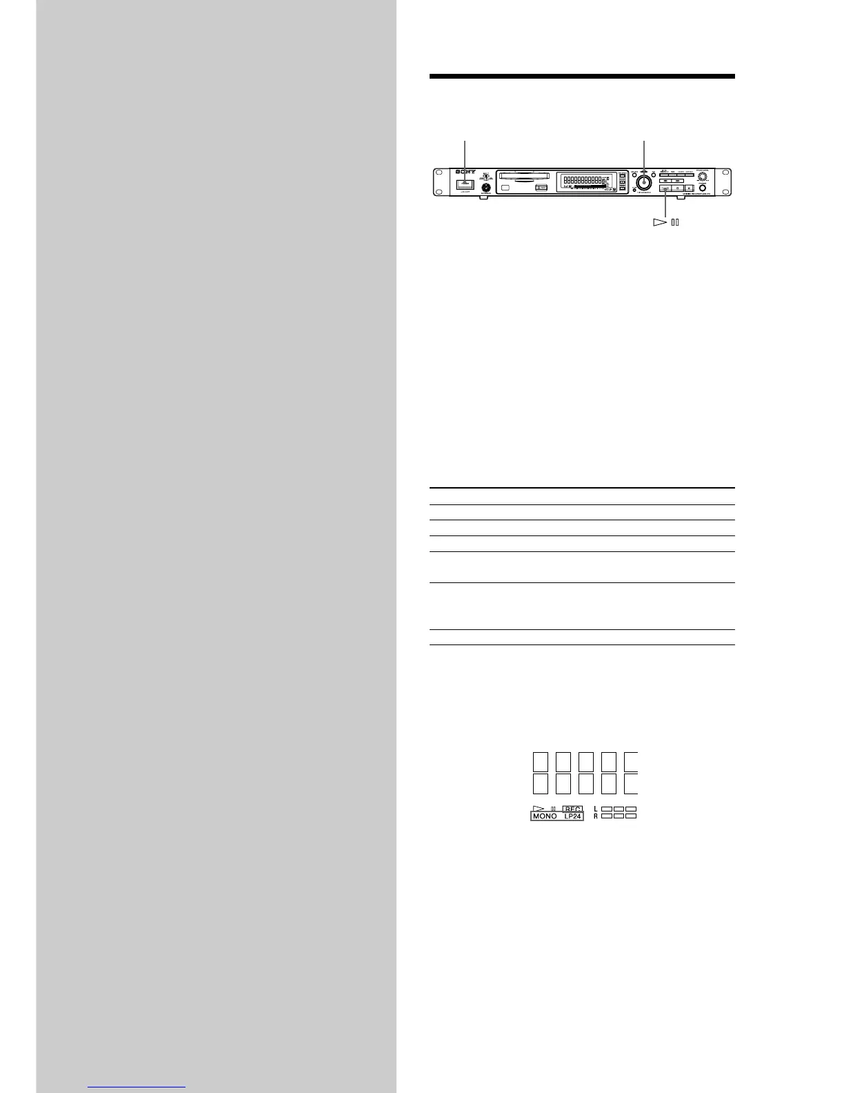 z To play the MD on which LP2, LP4 stereo recording or MONO