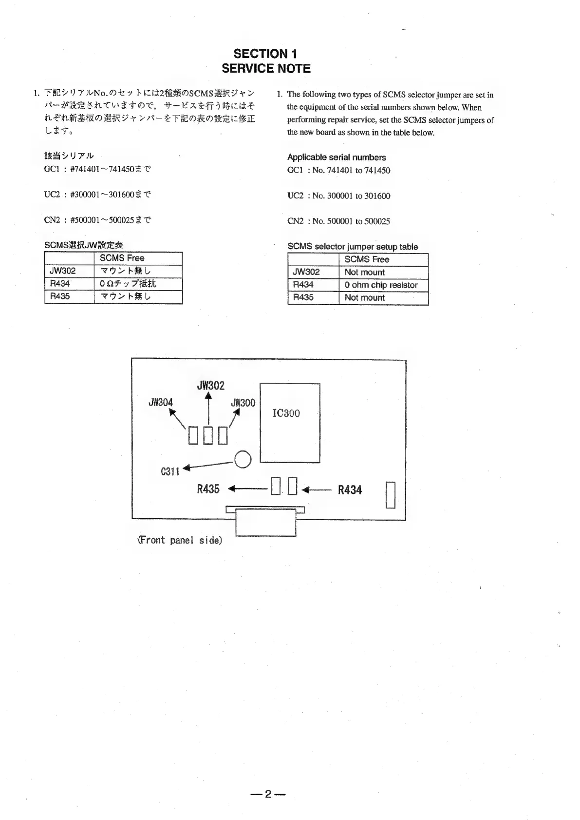 Sony MDS-E12 - SECTION 1 SERVICE NOTE; Applicable Serial Numbers; SCMS Selector Jumper Setup Table