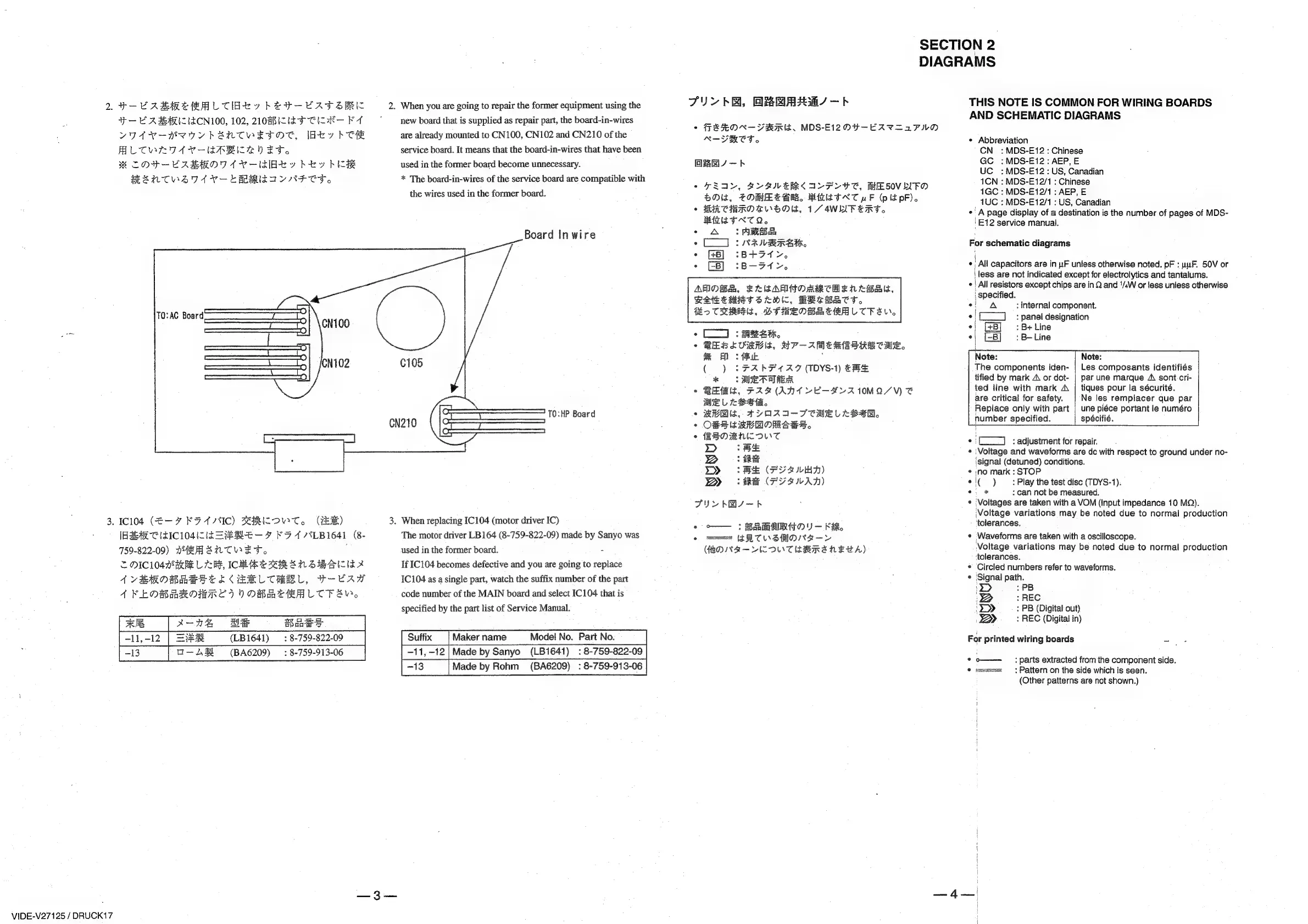 Sony MDS-E12 - SECTION 2 DIAGRAMS; Board Inwire; For Schematic Diagrams; For Printed Wiring Boards