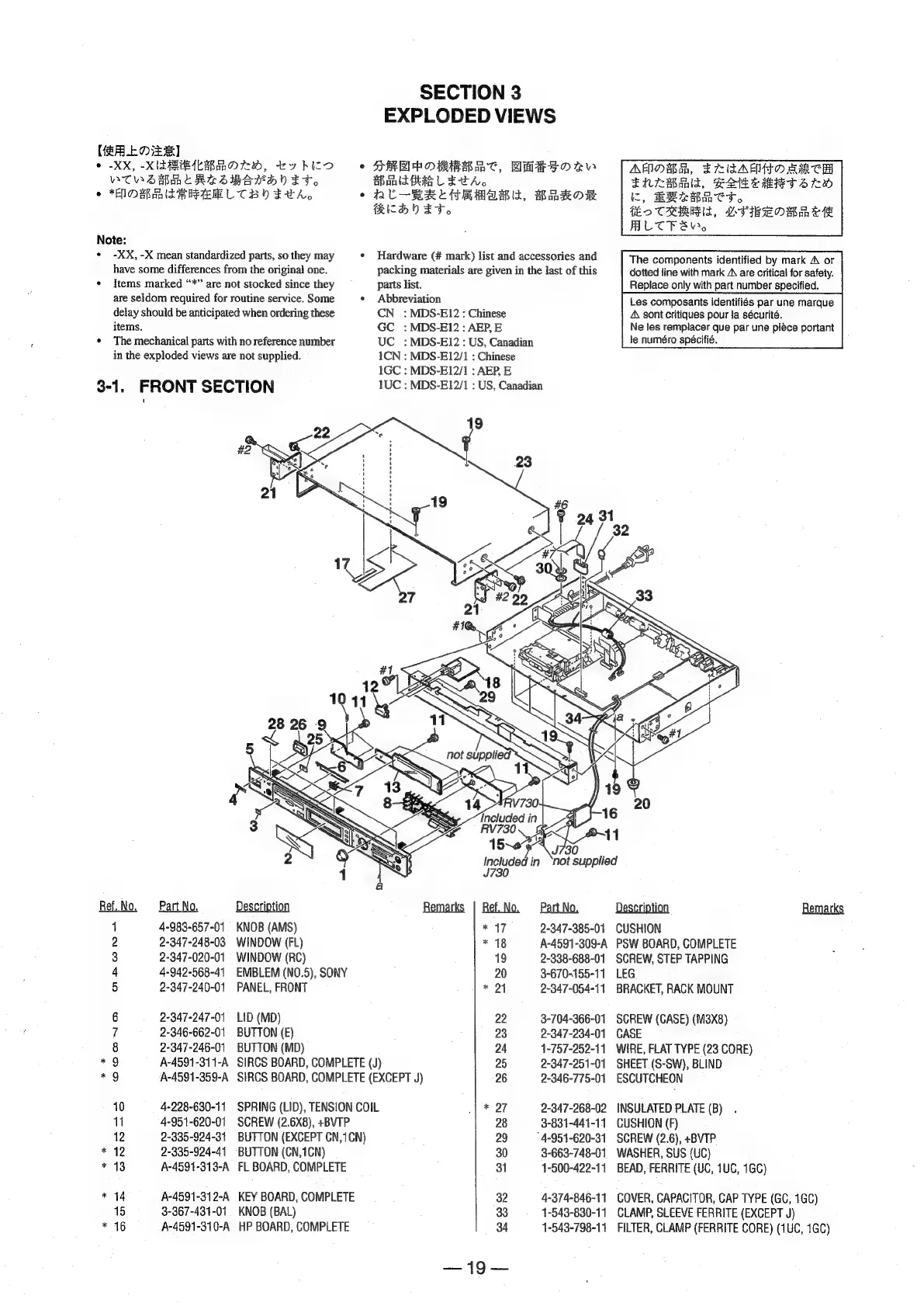 Sony MDS-E12 - SECTION 6 EXPLODED VIEWS; 3-1. Front Section
