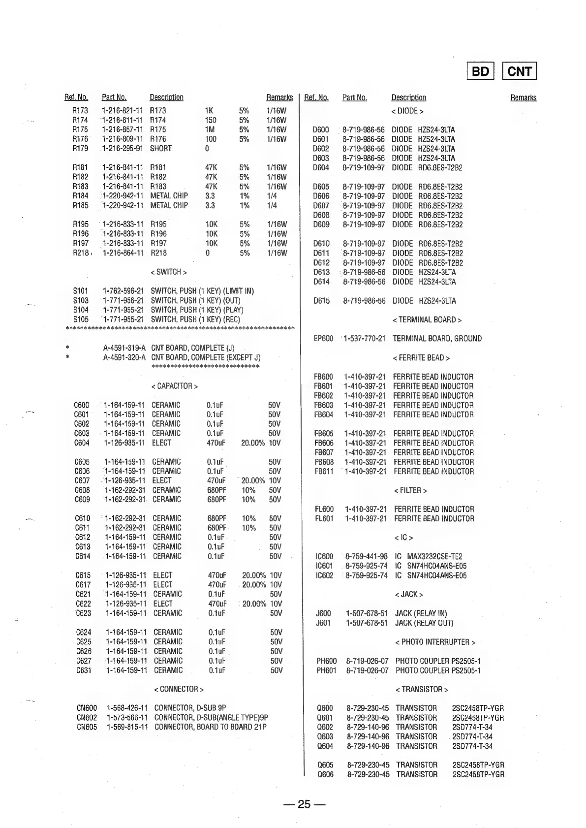 Sony MDS-E12 - SECTION 7 ELECTRICAL PARTS LIST; < CAPACITOR >; < CONNECTOR >; < DIODE >