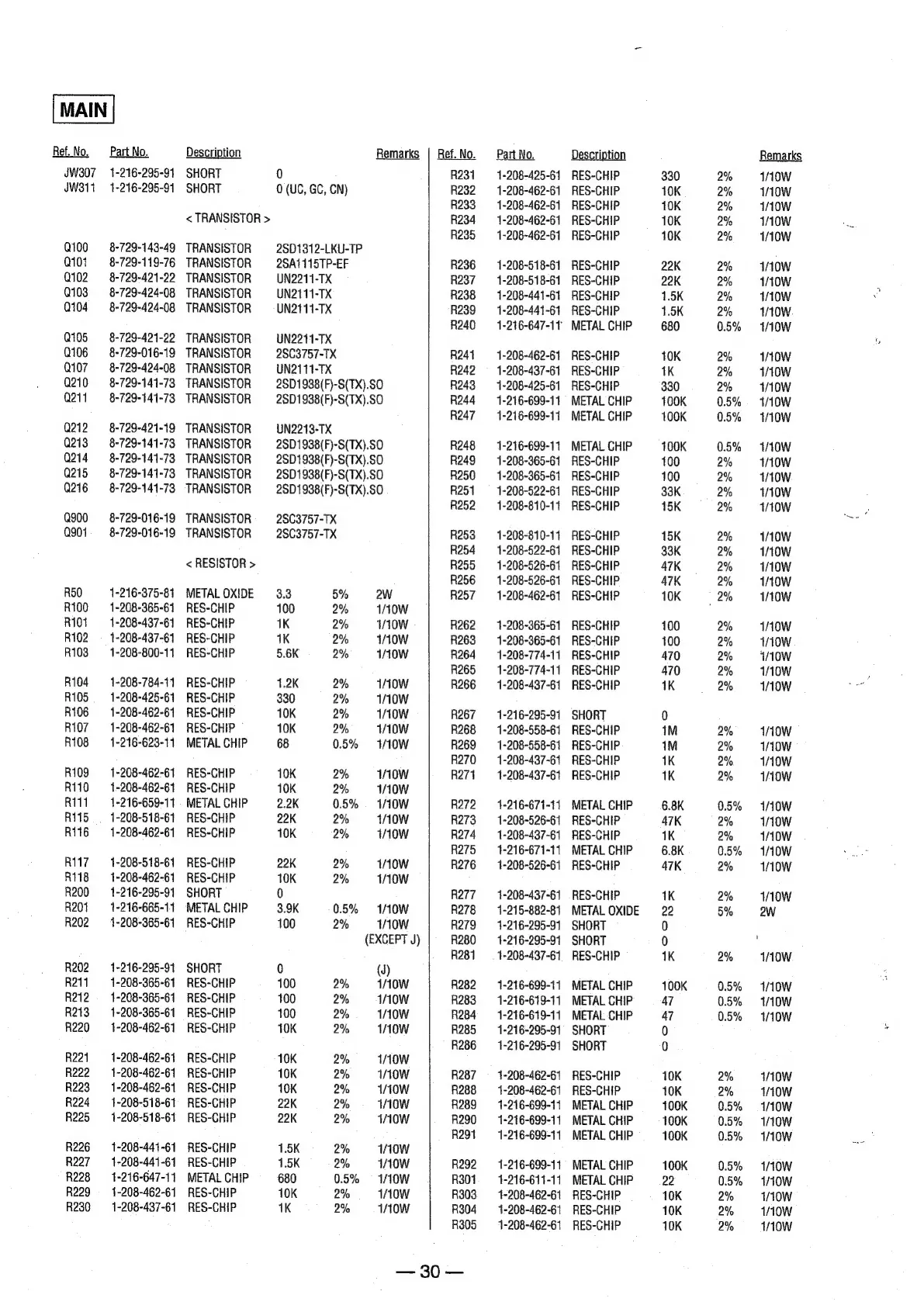 Sony MDS-E12 - SECTION 7 ELECTRICAL PARTS LIST; < RESISTOR >; < SWITCH >