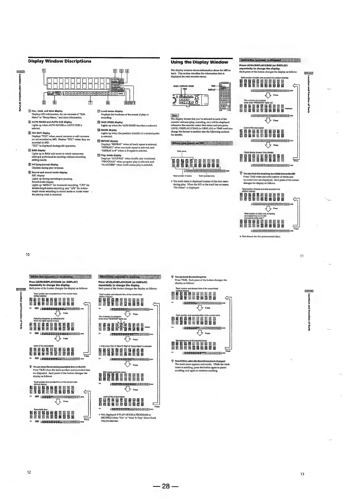 Sony MDS-E12 - Display Window Descriptions; Using the Display Window