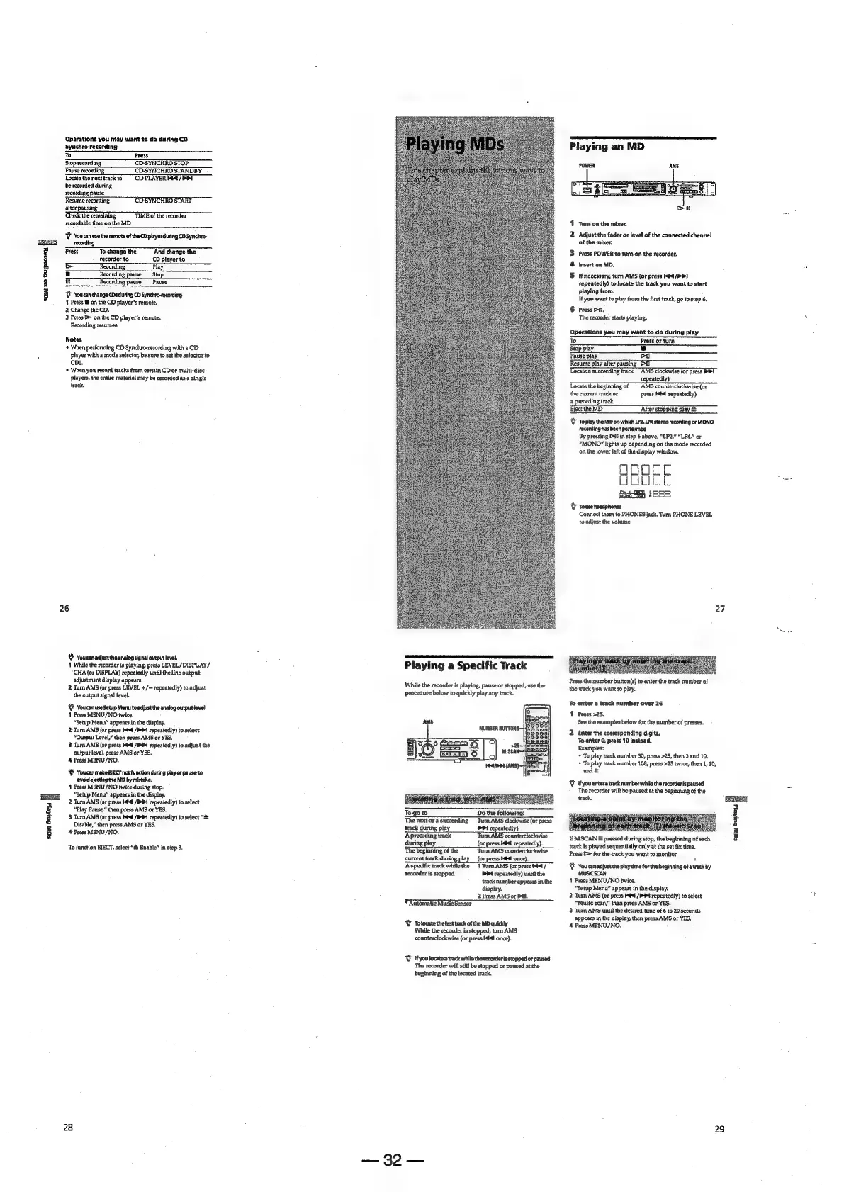 Sony MDS-E12 - Playing MDs; Operations you may want to do during CD; Playing a Specific Track