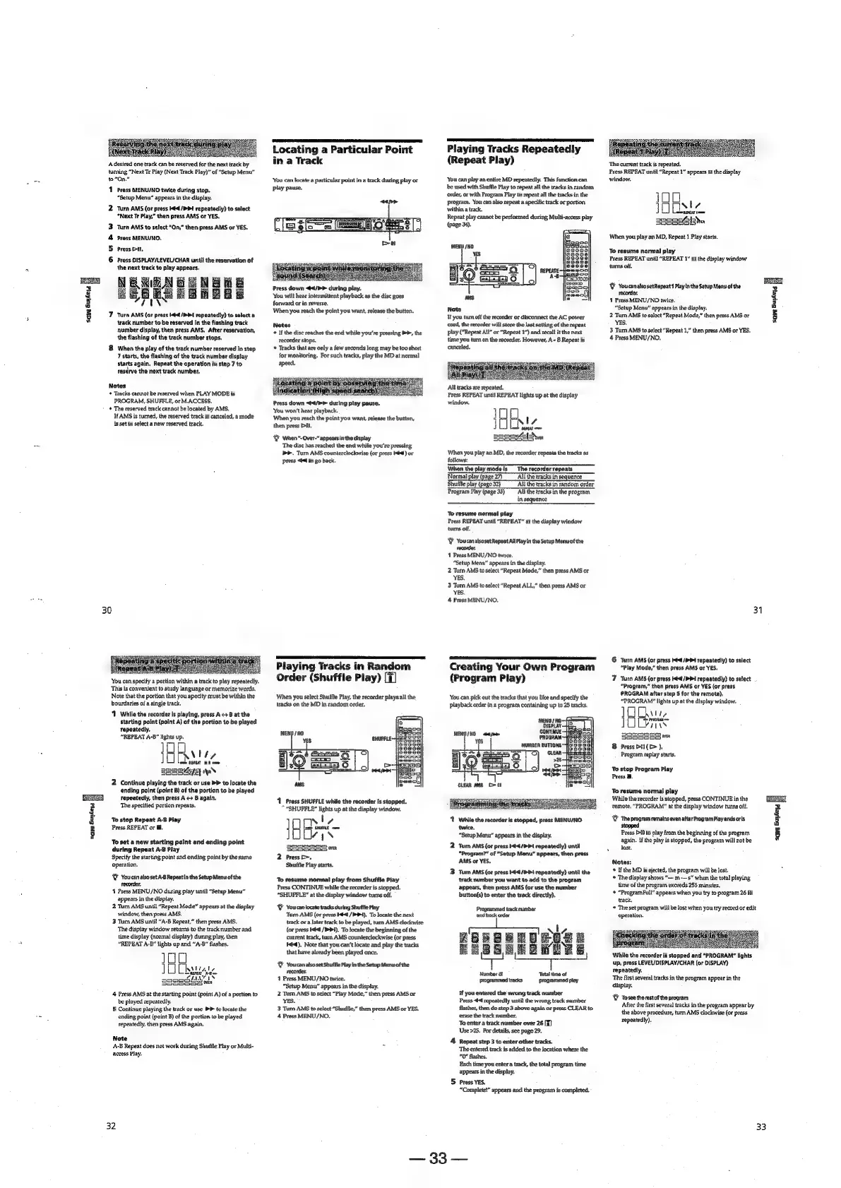 Sony MDS-E12 - Locating the Stored Track to Start Play Instantaneously (Multi-access Play); Locating a Particular Point in a Track; Playing Tracks in Random Order (Shuffle Play); Playing Tracks Repeatedly (Repeat Play)