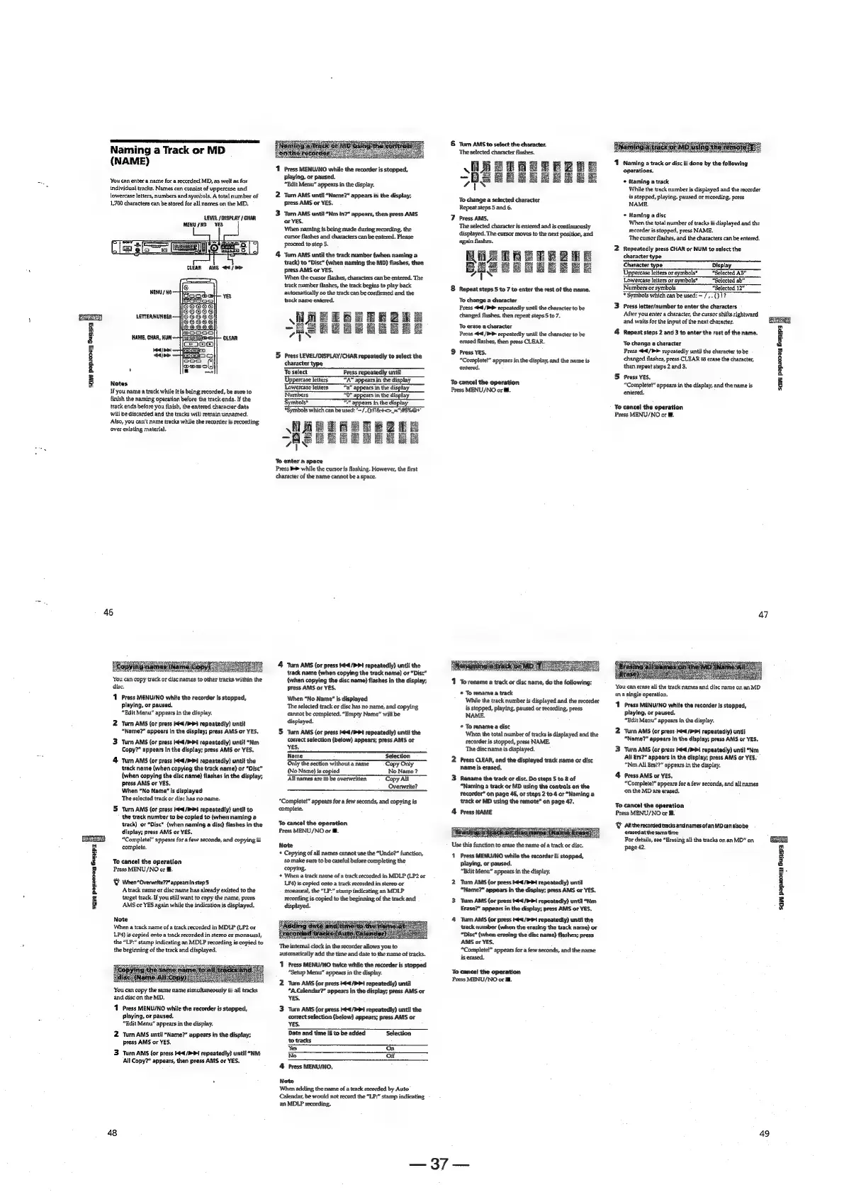 Sony MDS-E12 - Naming a Track or MD (NAME); You can easily enter or edit names.; You can copy track or disc names to other tracks within the disc.; You can copy the same name simultaneously to all tracks and disc on the MD.