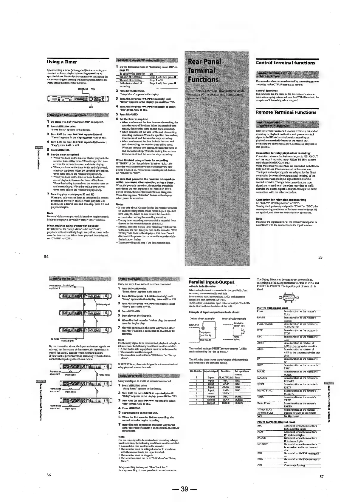 Sony MDS-E12 - Using a Timer; Relay Playback; Relay Recording; Parallel Input-Output