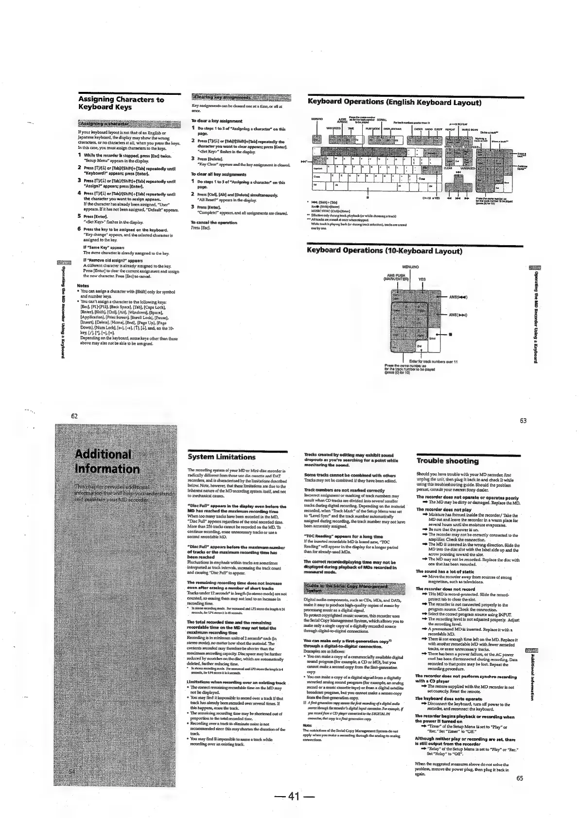 Sony MDS-E12 - Assigning Characters to Keyboard Keys; Assigning Characters to Keys; To Clear a Key Assignment; To Clear All Key Assignments