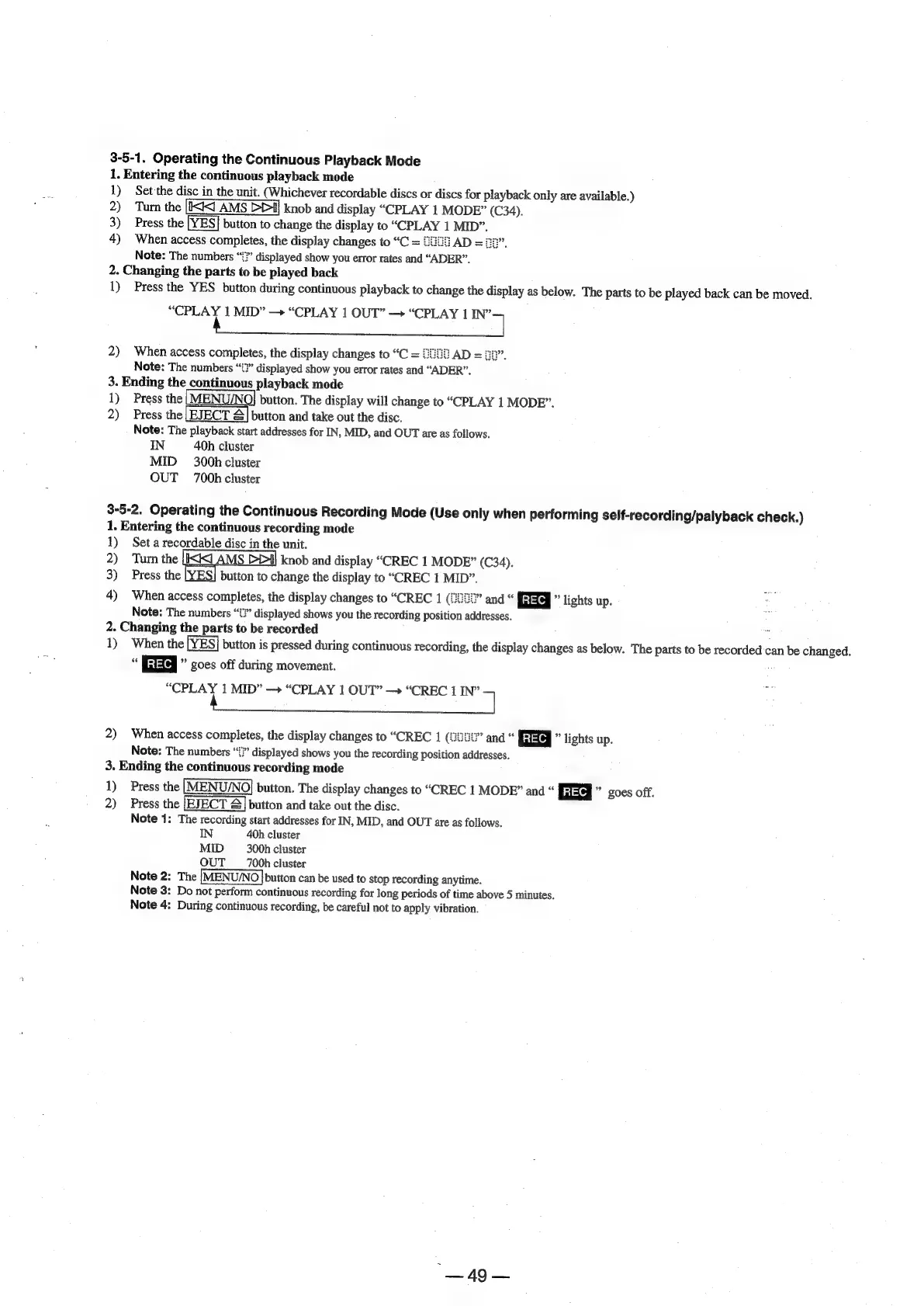 Sony MDS-E12 - 3-5. Operating the Continuous Playback Mode; 1. Entering the Continuous Playback Mode; 2. Changing the Parts to Be Played Back; 3. Ending the Continuous Playback Mode