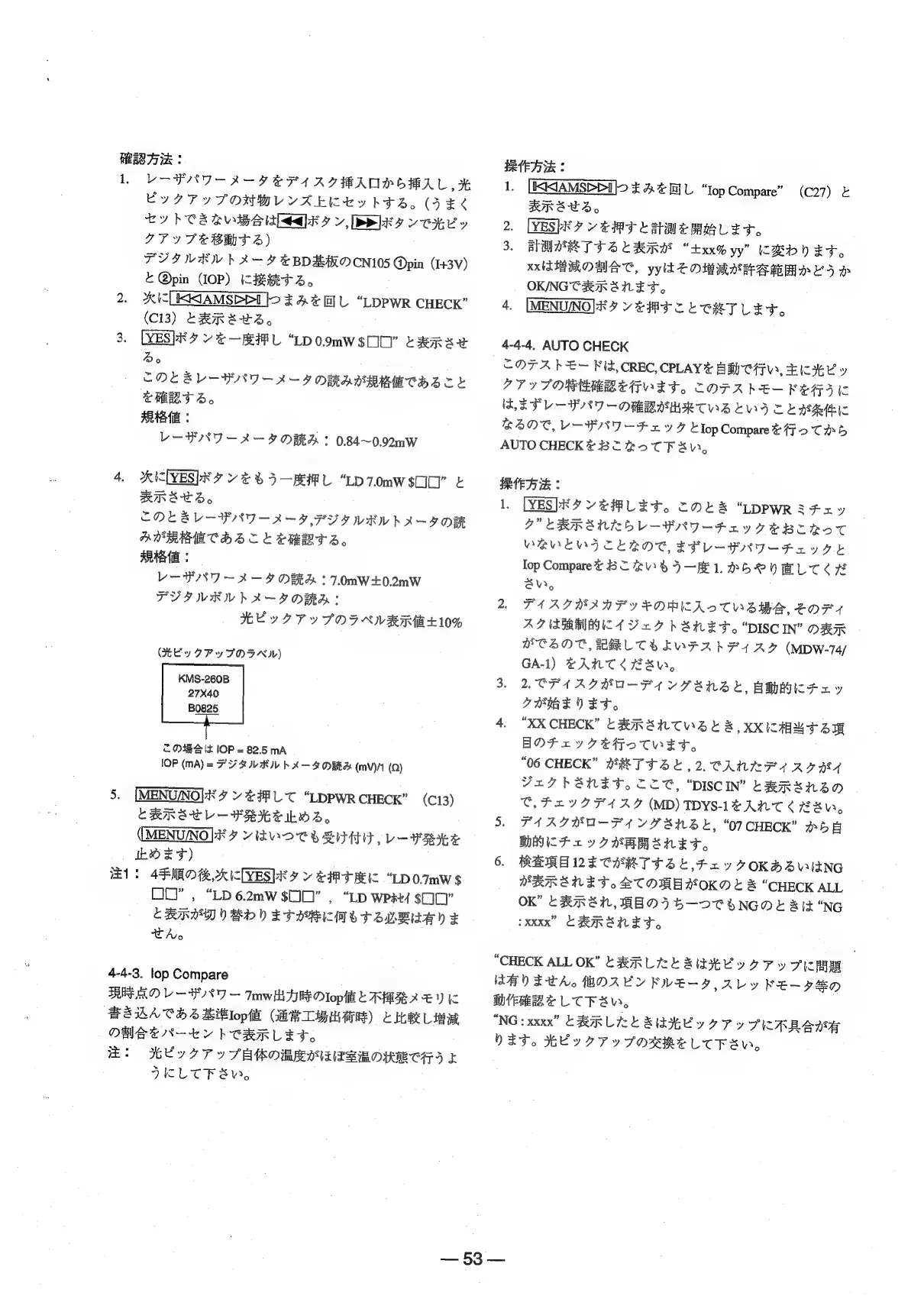 Sony MDS-E12 - 4-4-2. Laser Power Check; Connection; Checking Procedure; 4-4-3. Top Compare