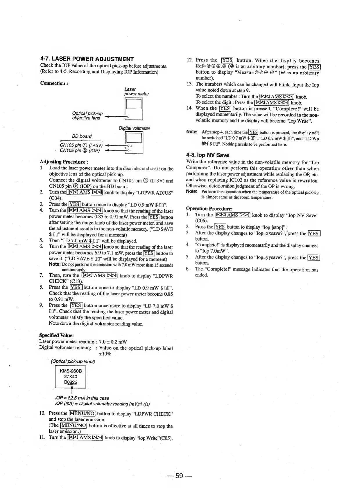 Sony MDS-E12 - 4-5. Recording and Displaying the IOP Information; Recording Procedure; Display Procedure; 4-6. Temperature Compensation Offset Adjustment