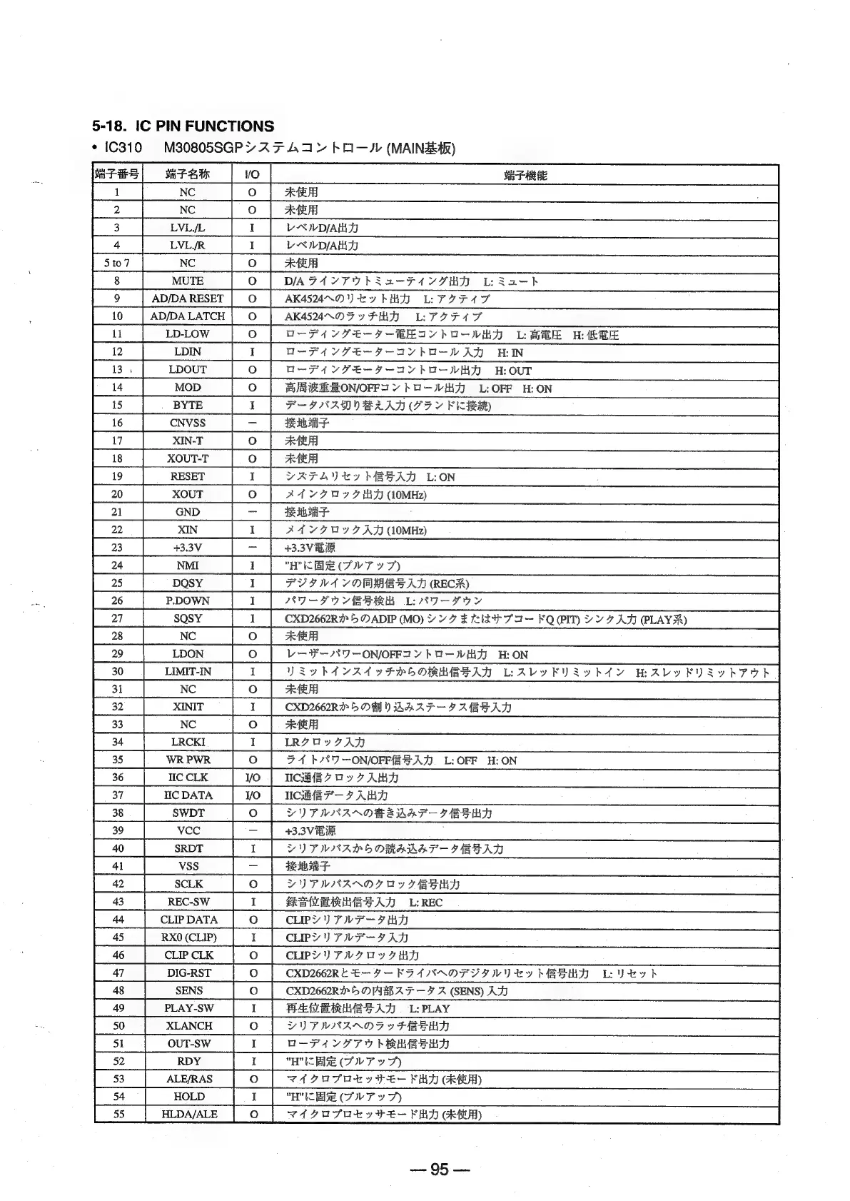 Sony MDS-E12 - 5-18. IC Pin Functions; * IC310 M30805 SGP SYSTEM CONTROL (MAIN BOARD)