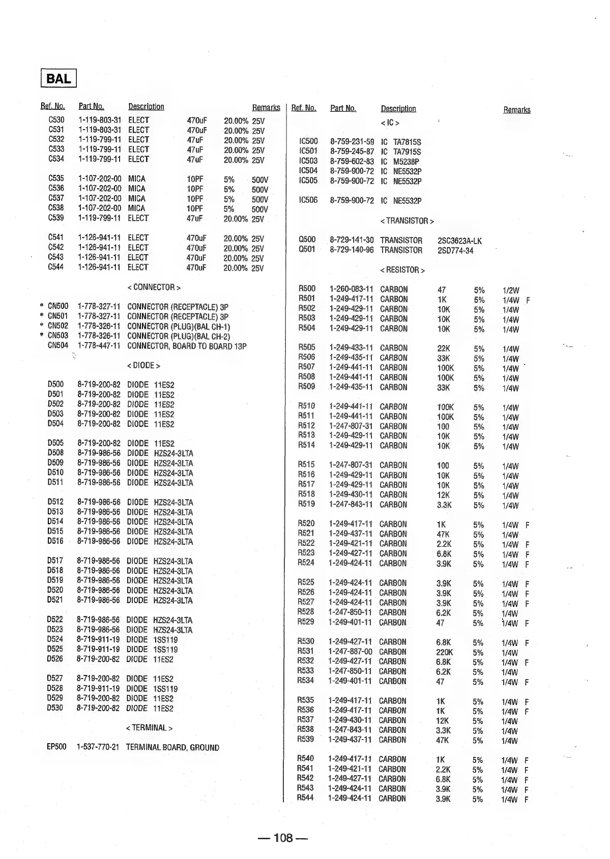 Sony MDS-E12 - SECTION 7 ELECTRICAL PARTS LIST; <IC>; < TRANSISTOR >; < RESISTOR >