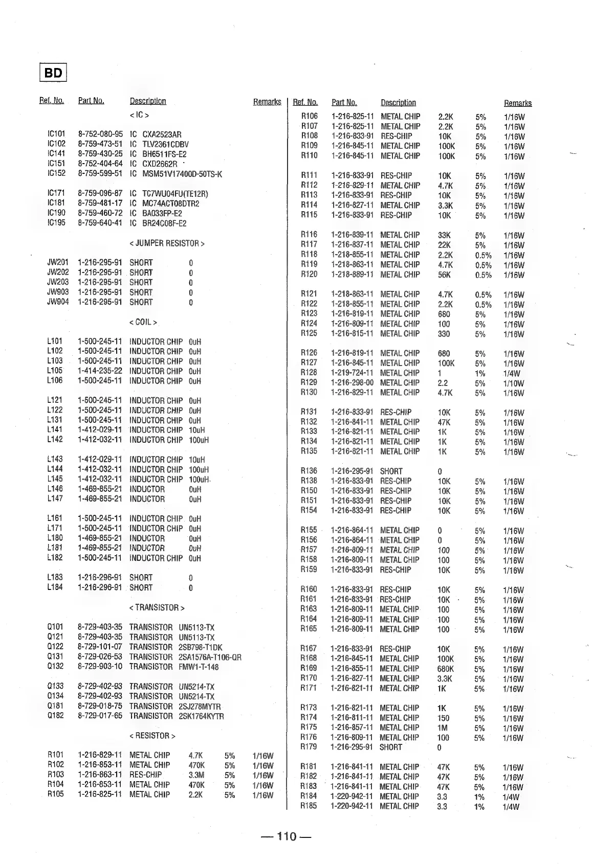 Sony MDS-E12 - SECTION 7 ELECTRICAL PARTS LIST; < RESISTOR >; < SWITCH >