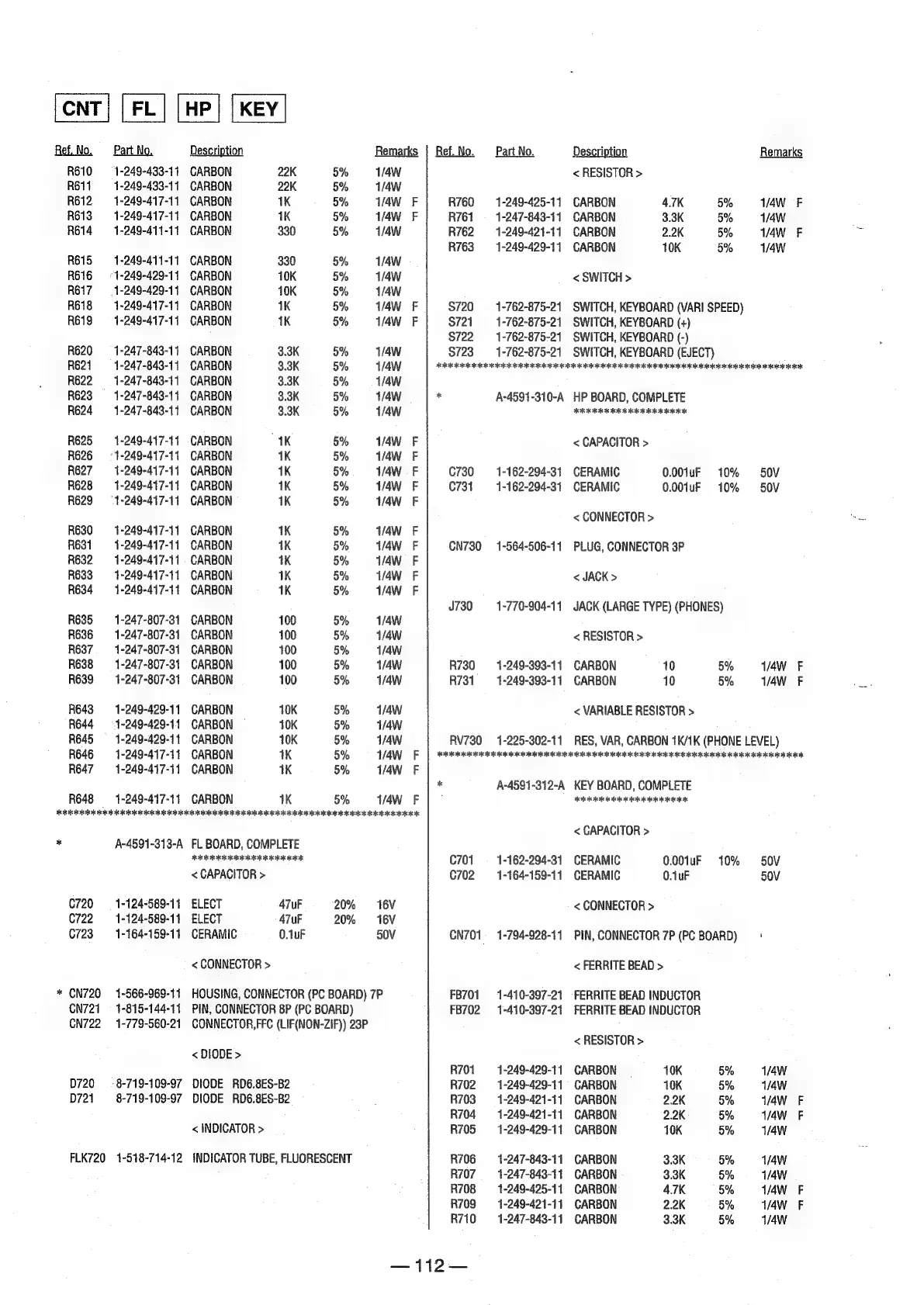 Sony MDS-E12 - SECTION 7 ELECTRICAL PARTS LIST; < RESISTOR >; < SWITCH >