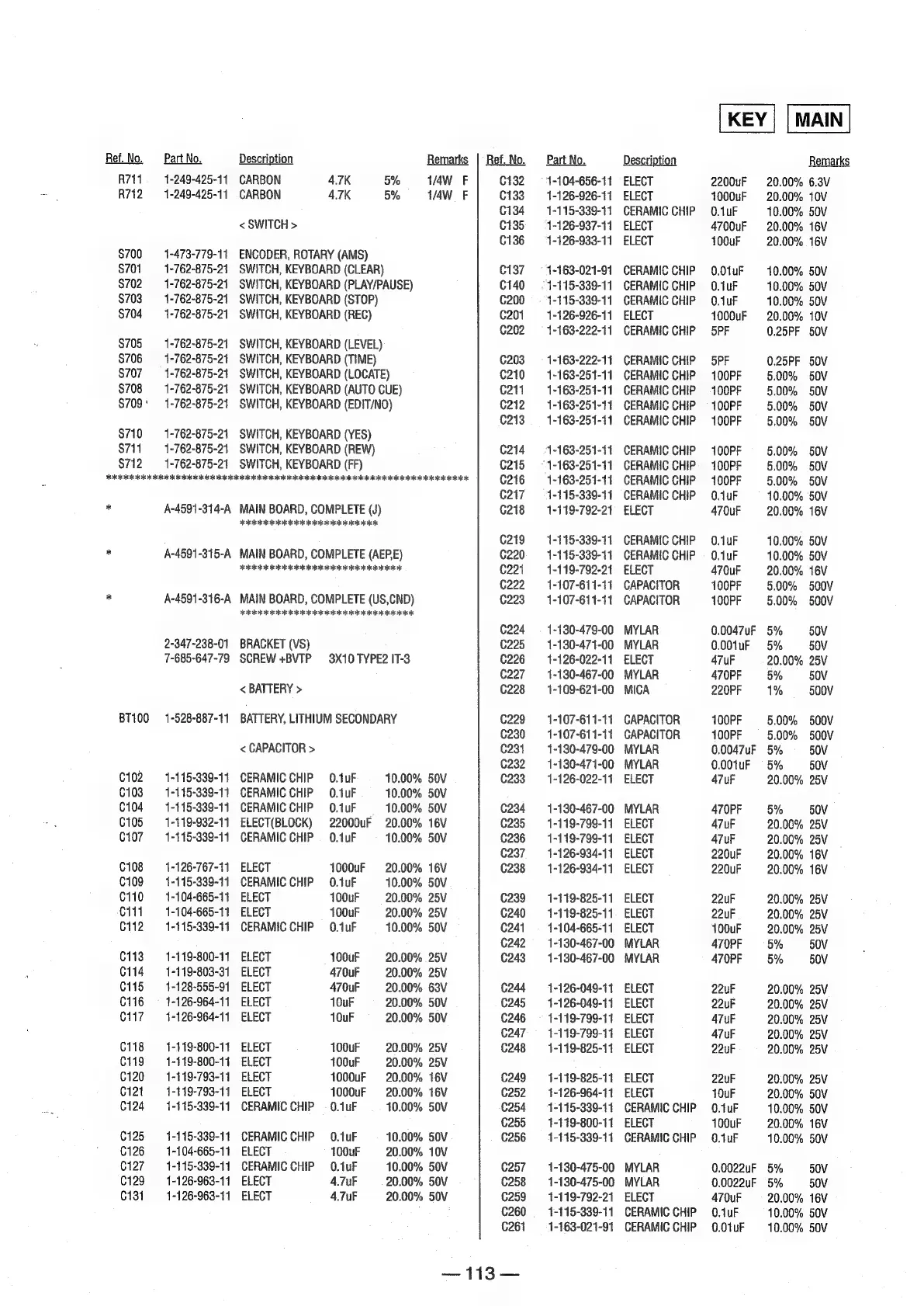 Sony MDS-E12 - SECTION 7 ELECTRICAL PARTS LIST; < CAPACITOR >; < CONNECTOR >; < DIODE >