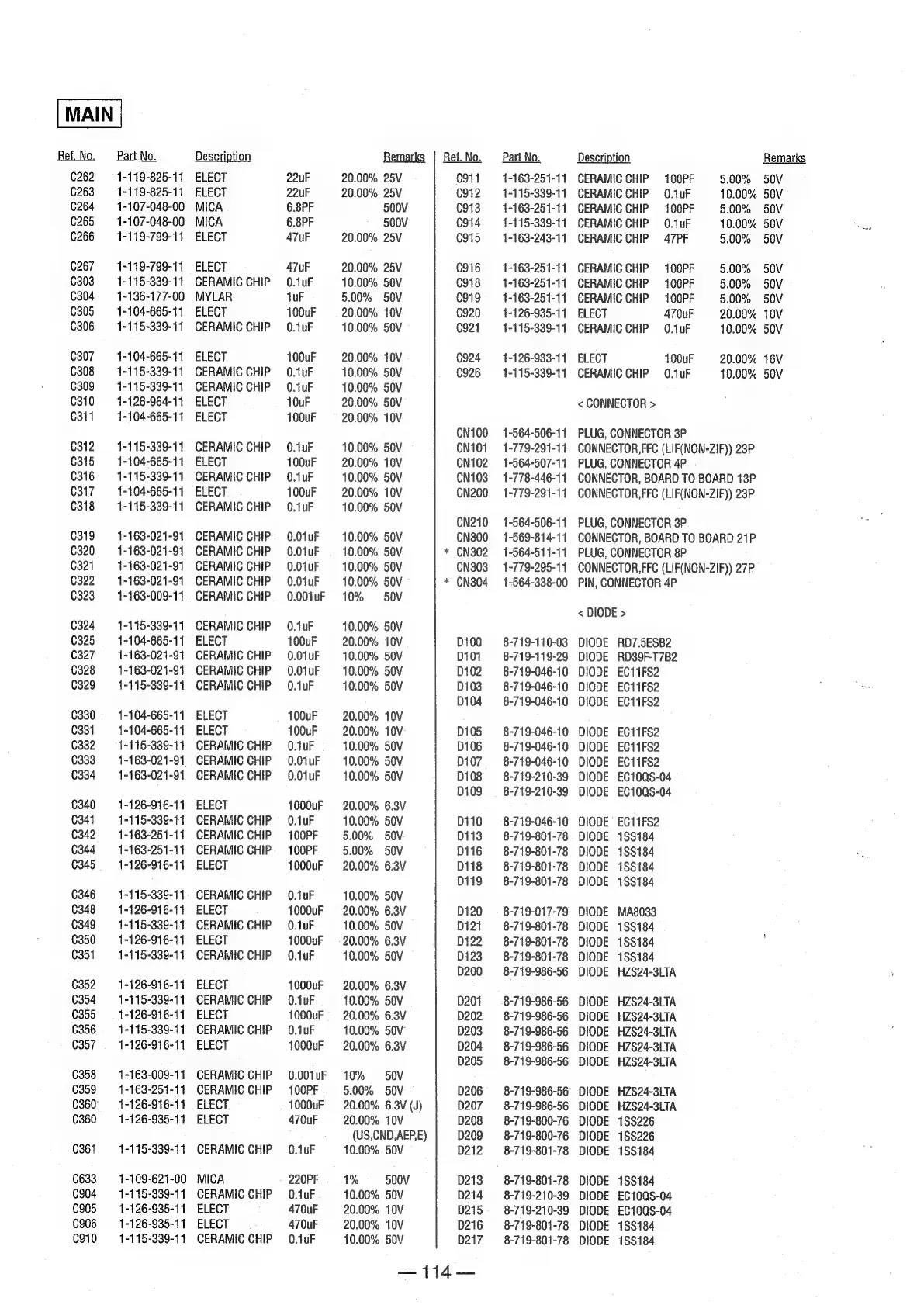 Sony MDS-E12 - SECTION 7 ELECTRICAL PARTS LIST; < DIODE >; < FERRITE BEAD >; < FILTER >