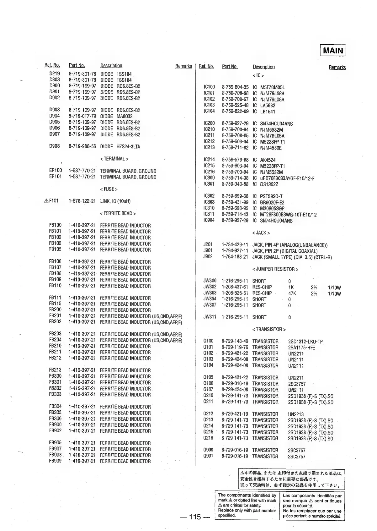 Sony MDS-E12 - SECTION 7 ELECTRICAL PARTS LIST; < FERRITE BEAD >; < FILTER >; <IC>