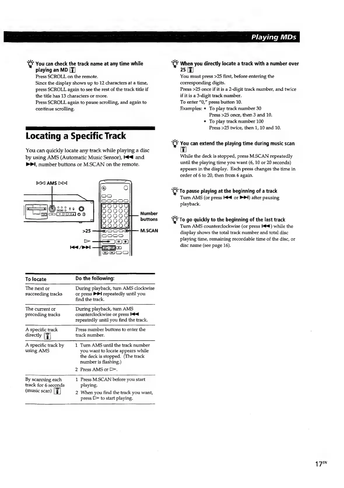 Sony MDS-E55 - Locating a Specific Track