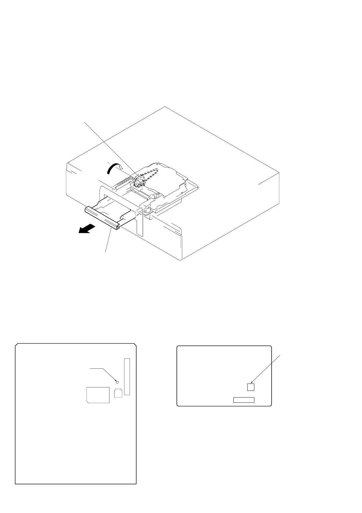 3 Rotate the pulley gear in the arrow direction A, and open the tray assembly in the arrow direction B.