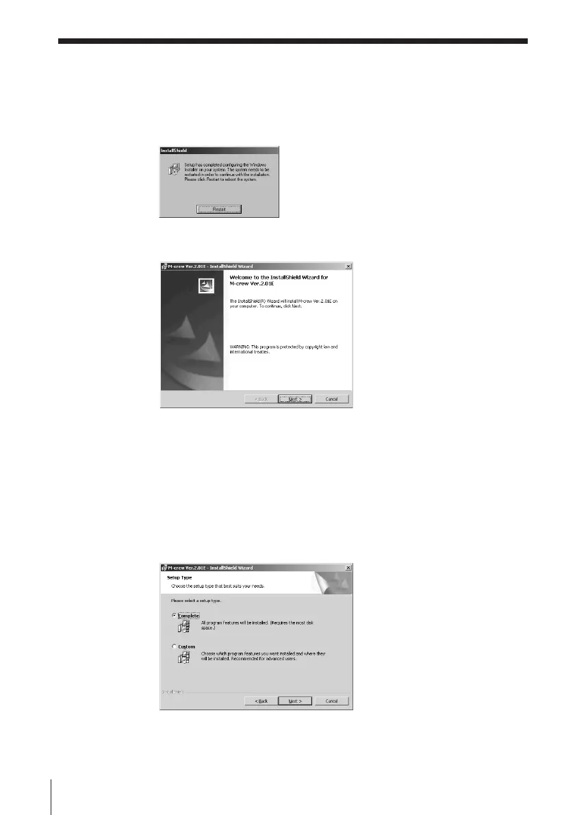 Installer安裝器,即將出現如下窗口。此時,請單擊“Restart”(再起動)以