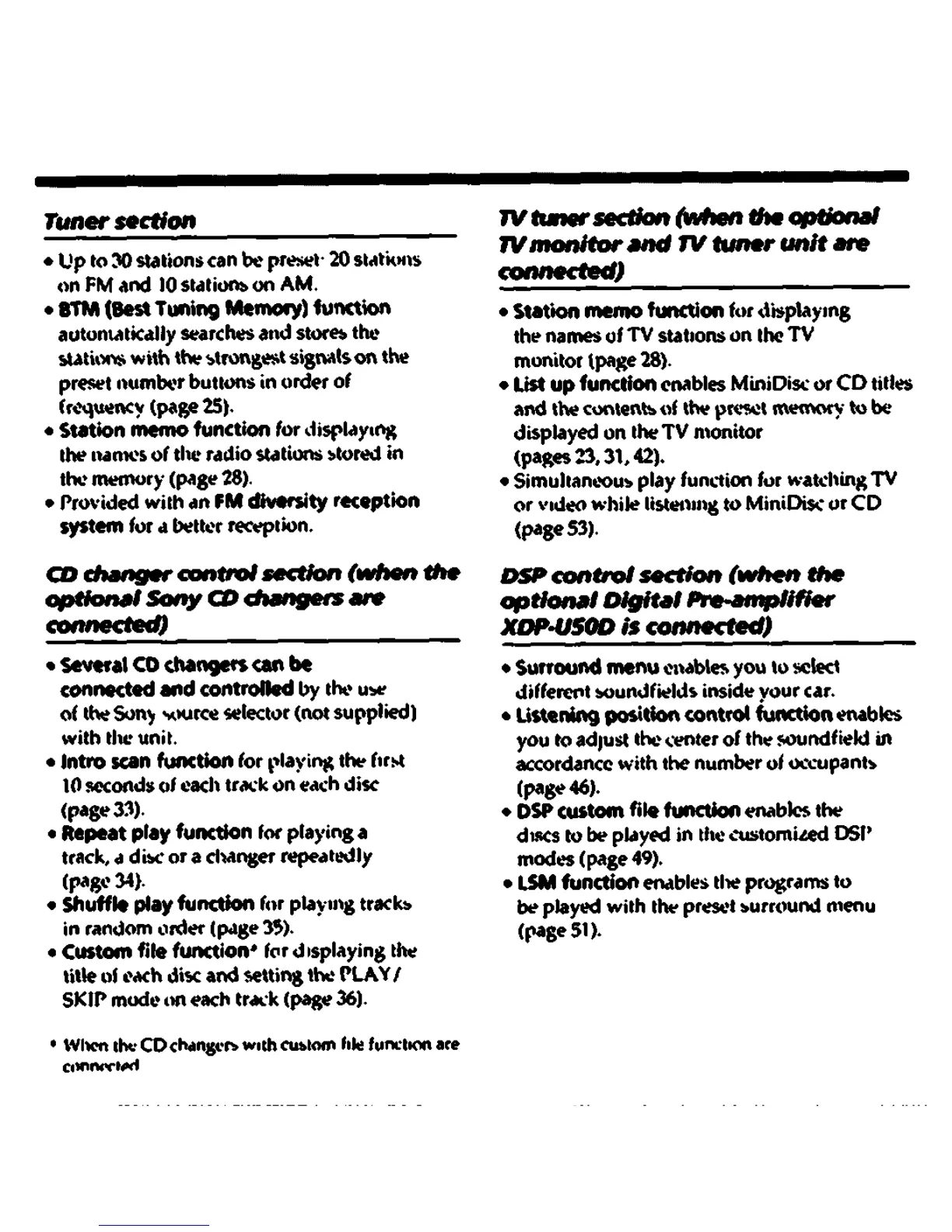 Sony MDX-400 - DSP Control Section; DSP Mode Adjustments and Functions