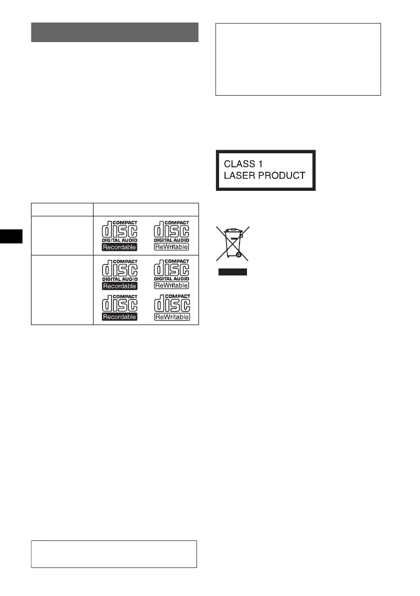 Type of discs Label on the disc
