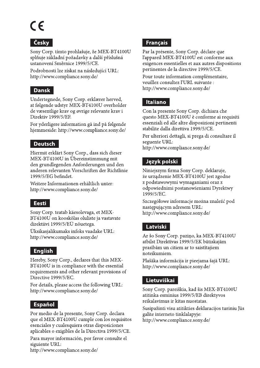 Other manuals for Sony MEX-BT4100U