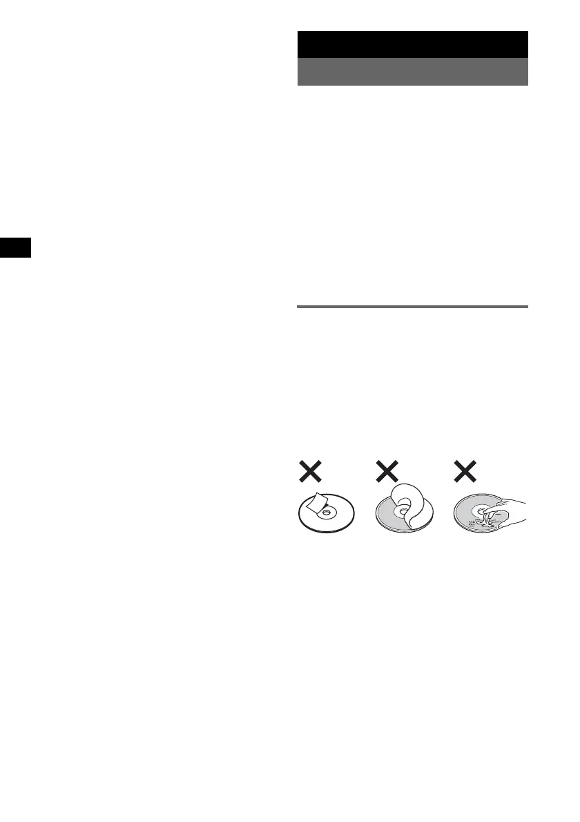 • Do not attach labels, or use discs with sticky ink/