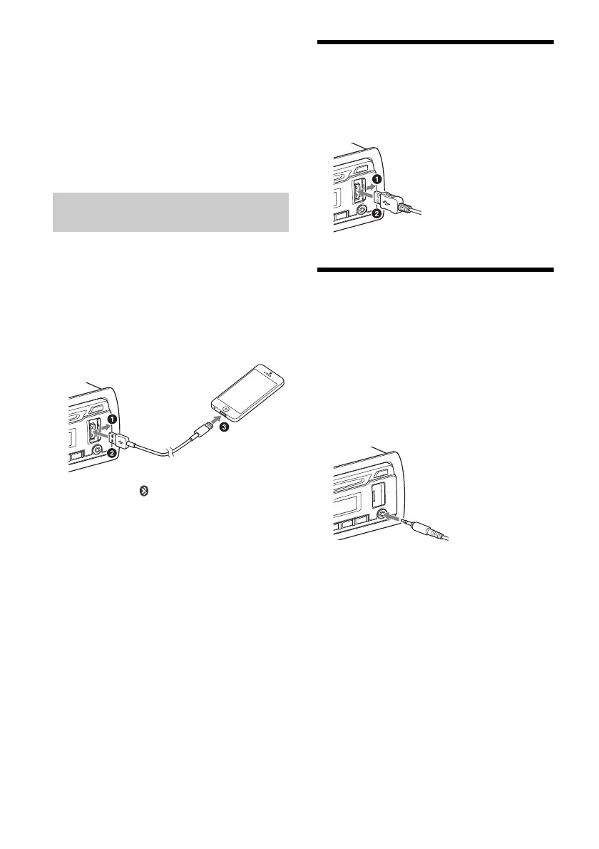 To connect an iPod/iPhone, use the USB