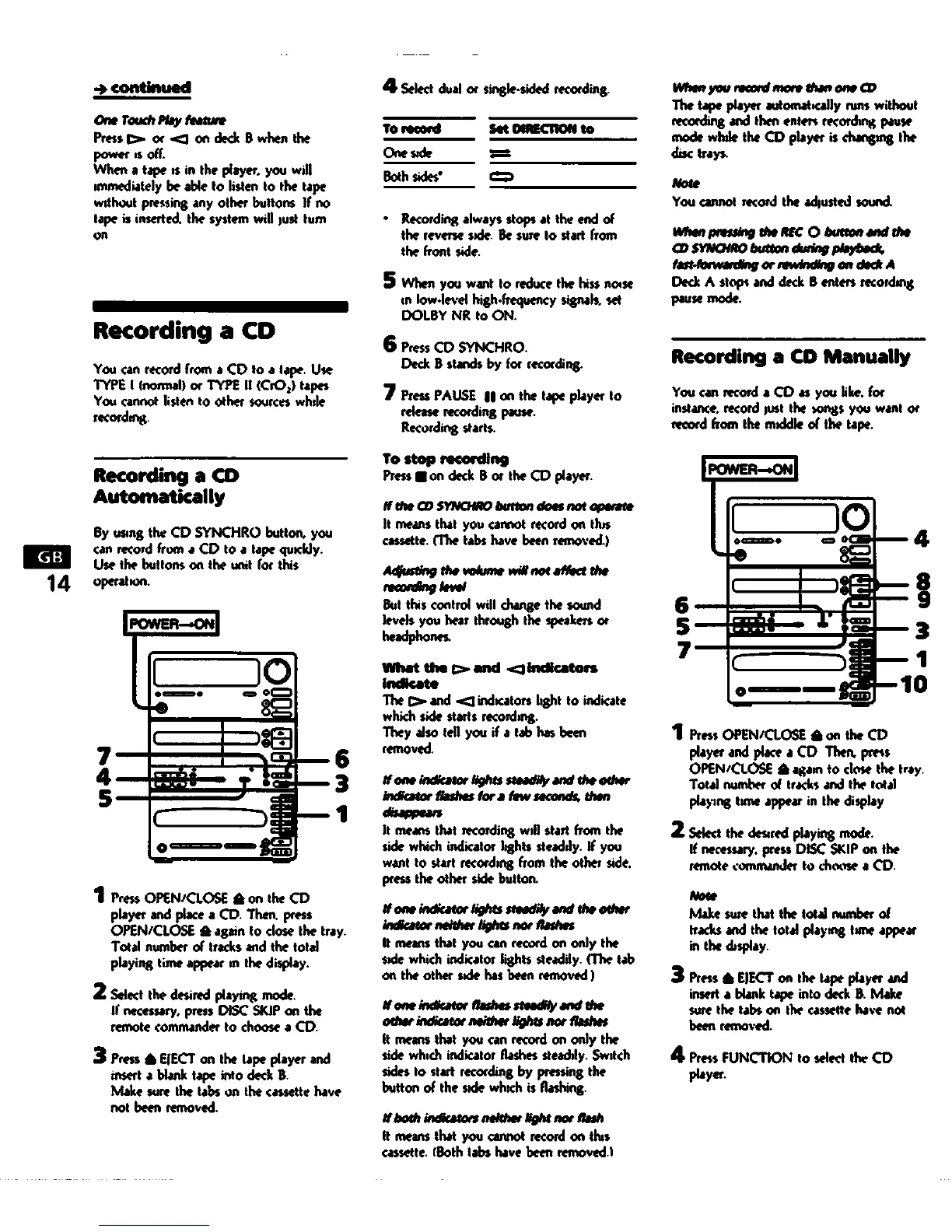 Sony MHC-C33 - Recording from CDs to Tape