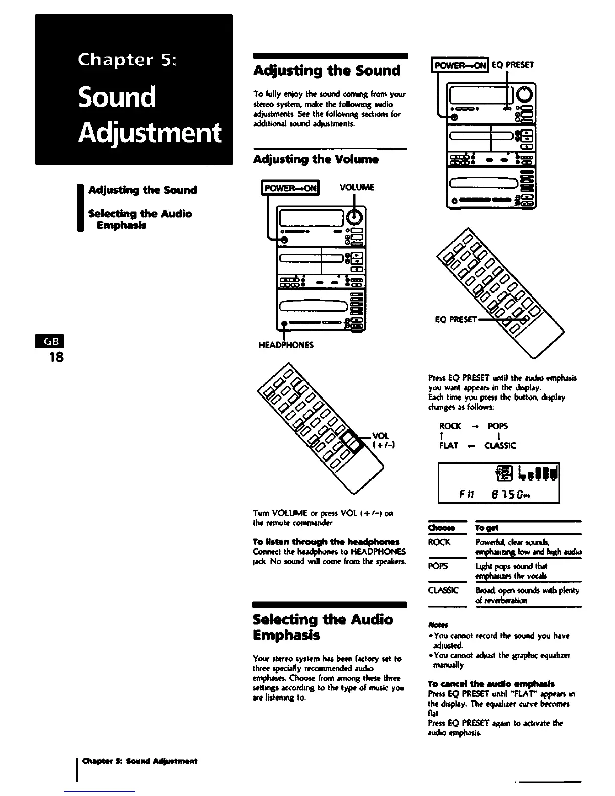 Sony MHC-C33 - Sound Adjustment; Adjusting the Sound; Adjusting the Volume; Selecting the Audio Emphasis